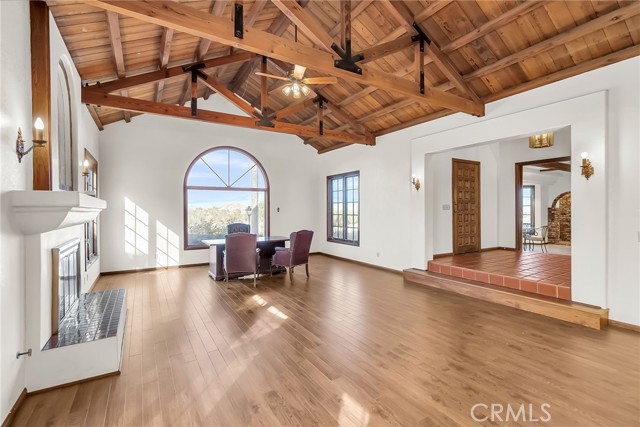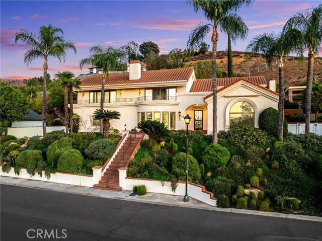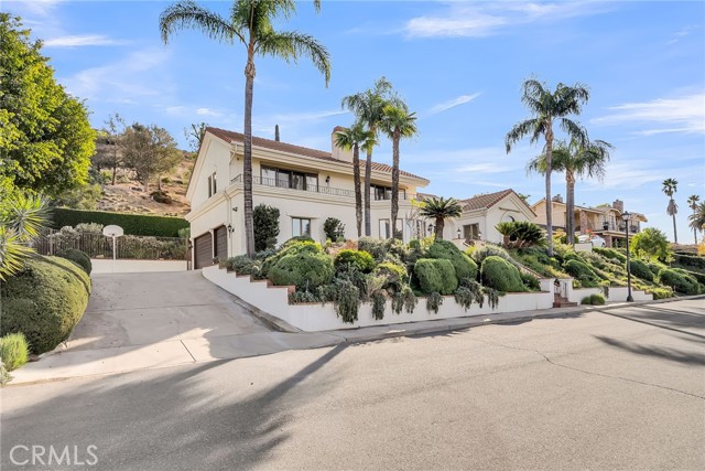 VICTORIA WOODS SOUTH- KNOB HILL ESTATES- stunning custom built Santa Barbara style Spanish Colonial home nestled on this elevated hillside site: Commanding views of Palm Tree lined Victoria Avenue, city lights, Mount Rubidoux, the downtown Riverside skyline and the snow capped mountains beyond. Timeless style and character abound in this thoughtfully configured home; Massive formal living room with dramatic wood beamed ceiling and large Palladian window and wood-burning fireplace; Generous formal dining room with coved ceiling; Expansive island kitchen with walk-in pantry, breakfast bar and all built-in appliances opens to the spacious family room with large circular walk-a-bay window and Inglenook Fireplace with wood stove; Ascend the wide stairs to the upper level bedrooms separated by the upper landing; Two family bedrooms each with a private ensuite bath are located at rear south end of the upper level; The primary suite enjoys the seclusion of the north front of the second floor where views are enjoyed from the adjoining terrace; Additional primary suite amenities include the luxurious bath and walk-in closet with direct access to the upper level laundry room; Also sharing the upper floor but accessible from the back stairs is the guest suite or bonus room with kitchenette, private bath and access to the laundry room; Oversized, attached three-car side loaded garage and large driveway parking area; The grounds are beautifully landscaped with mature shade and multiple varieties fruit trees and plantings amid multiple patios on varying levels affording ample outdoor recreation areas. Built-in swim spa and terraced orchard complete the rear portions of this secluded site; Close to all schools, Victoria Club and just a short distance from the Riverside, Plaza, UCR, RCC and the 91 freeway! Offered for the first time in 30 years!Interested in this Listing?