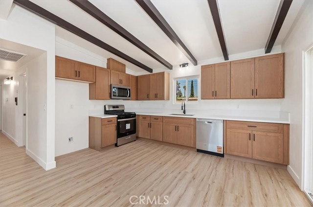 TURNKEY! Welcome to your beautifully remodeled 4 bedroom 2 bathroom home in Riverside that's ready for its new owner! As you walk up to your property you are greeted with a long spacious driveway with plenty of room for multiple cars or toys. As you enter you home you'll notice a spacious living area with exposed dark wood beams that leads to your beautiful modern kitchen! No expense has been spared! Your kitchen comes equipped with gorgeous brown cabinetry, white counter tops, a new stove, microwave and dishwasher. As you turn down the hall you'll find 4 spacious bedrooms, and 2 fully remodeled bathrooms. If you head outside you'll notice you have an expansive backyard which is perfect if you love hosting! It s stylish, modern, and ready for you to move in!Interested in this Listing?