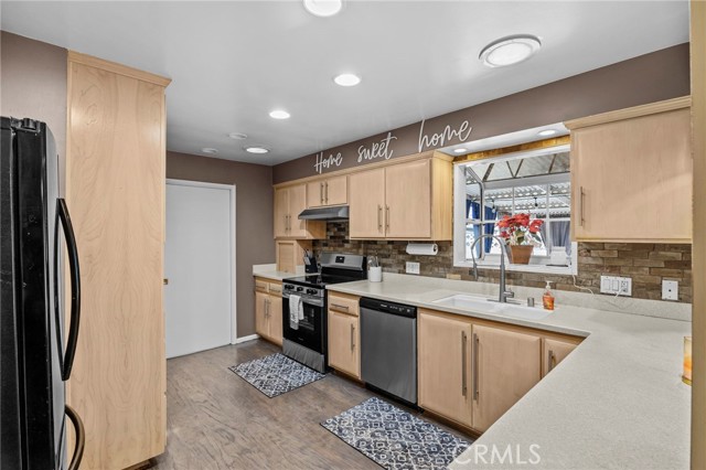 Welcome to this gorgeous Colonial-style home in the ever popular Wood Street Neighborhood. Originally a certified Medallion Home, it exudes charm in its truest form. This unique 2-story offers 2 cozy bedrooms and 1¾ baths, giving the perfect blend of character and functionality. From the moment you pull up, the curb appeal will steal your heart! Step inside, and you ll find a spacious living room featuring a stunning brick fireplace the ideal spot for chilly nights and relaxation. Storage is a breeze with a clever closet tucked beneath the stairs. You will love the rich, original hardwood floors in the dining room. The kitchen has gorgeous custom cabinetry, Corian countertops, and laminate/wood floors. If you love natural light, you ll adore the skylights and garden window that fill the space with warmth. Bonus points for recessed lighting and a breakfast bar where you can enjoy your morning coffee or entertain friends. The downstairs bedroom has a recently updated en-suite bathroom for ultimate convenience and a roomy closet. Plus, the indoor laundry room off the kitchen has a gas line for a gas dryer, though the electric option is still available too so you have the flexibility to choose. Upstairs, you'll find a huge primary suite, complete with its own dormer windows that bathe the room in natural light. There's a sweet little retreat area too with endless possibilities of a den, office, nursery, or whatever your choosing! The ¾ primary bath is recently updated & just the right size for comfort and functionality. Plenty of closet space as well! With the option of central AC or a whole house fan to keep things cool on those warm summer evenings, you can save on your electric bill without sacrificing comfort. Outside, the covered patio is perfect for entertaining or just relaxing. The electrical panel and water heater were replaced in the last 4 years and the attic has new insulation providing extra cool temps in the so cal heat. This home is a true find, blending classic charm with modern updates in all the right ways. You will be just minutes from Riverside Community Hospital, Riverside City College and the Riverside Plaza. have cozy seat in your driveway for the 4th of July Fireworks show at the popular Mount Rubidoux!! Come see this one for yourself you won t want to miss it!