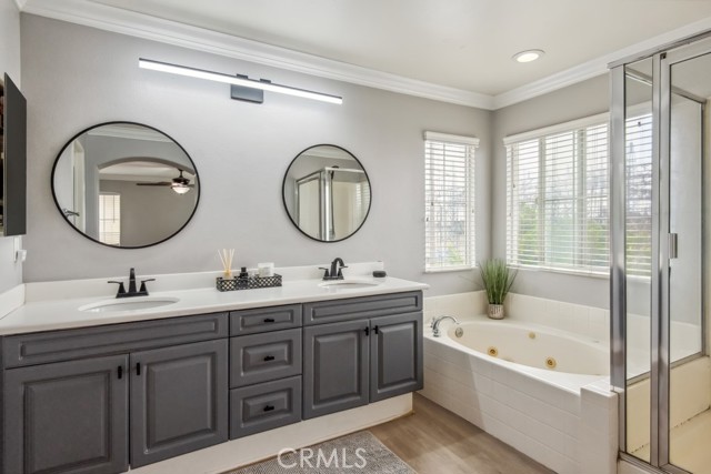 Welcome to this 4-bedroom, 2.5-bathroom home nestled in the gated community of Somervale in Riverside. Step inside to a spacious formal living and dining room ideal for entertaining guests or enjoying family gatherings. The open-concept, eat-in kitchen seamlessly flows into the living space area, complete with a cozy fireplace. Downstairs features all-tile flooring for easy maintenance, along with a convenient half bathroom for guests. Upstairs, you'll find three well-sized secondary bedrooms and a full bathroom, along with a generous primary suite. The primary bedroom includes a walk-in closet and a private ensuite bathroom with a separate shower and a relaxing soaking tub. Thoughtful details such as crown molding, ceiling fans, and recessed lighting can be found throughout the entire home. Step outside to the spacious backyard, where a fully covered stone-paved patio and citrus trees create the perfect setting for outdoor enjoyment, along with the privacy of having no rear neighbors. The attached two-car garage includes an EV charger, and guest parking is conveniently located just across the street. At the heart of this community is a lush greenbelt and BBQ area, offering a park-like setting exclusively for the use of its residents. Conveniently located just minutes from shopping, dining, Cal Baptist University, and the 91 freeway, this home is also close to Arlington Sports Park, historic Victoria Avenue, and California Citrus State Historic Park providing easy access to some of Riverside s most scenic and recreational destinations. Don t miss your opportunity to call this wonderful property your new home!Interested in this Listing?