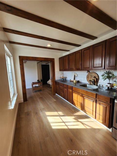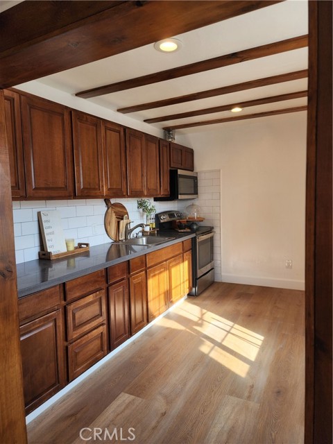 Fall in love with this adorable, charming, cozy and full-of- character 1 bed /1 bath ADU! Why settle for apartment living when you can enjoy the comfort, charm, and privacy of this beautifully updated ADU unit? this delightful 1-bedroom, 1-bath ADU is brimming with character and warmth making it a place you ll be proud to call home. Step inside to a charming separate living room featuring wood ceiling beams that add a cozy, rustic touch. The generous-sized kitchenette offers ample cabinet space, rich countertops, and matching ceiling beams that tie the space together beautifully. A private indoor laundry room adds daily convenience, while all-new flooring and fresh paint throughout give the space a crisp, modern feel. Enjoy year-round comfort with a brand-new mini-split system for A/C and heat. The spacious bedroom includes a large walk-in closet, and the updated bathroom adds a sleek and stylish finishing touch. Outside, you'll love the private gated entrance and generous small backyard perfect for relaxing. Gated parking fits up to 3 vehicles, RV, or work truck, and small pets are welcome too! This adorable, pridefully maintained home is move-in ready and ideal for anyone seeking a peaceful, private, and well-cared-for living space. This ADU is to cute to pass up! (more pictures to come)