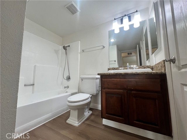 SPACIOUS 2 BEDROOM/2 BATH CONDO IN THE RIVER OAKS GATED COMMUNITY FOR RENT: Recently updated, this bright and spacious 2nd-floor condo features brand new laminate flooring for a modern touch, freshly painted throughout with a clean and inviting palette, new vanity light fixtures for added style, new ceiling fan in eating area, new window blinds and a private balcony off the living room area. Condo includes a refrigerator, washer and dryer. Enjoy the community amenities: pool, spa, outdoor kitchen area, tennis court, fitness center and well-maintained common areas. Conveniently situated near the 91, 15, and 60 freeways, this condo offers easy access to shopping, dining, entertainment, hospitals, schools and Universities. Don't miss out on this updated condo - perfect for comfortable living in a serene and highly sought-after area.