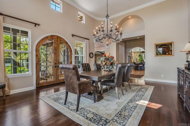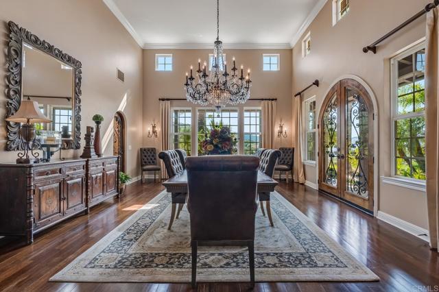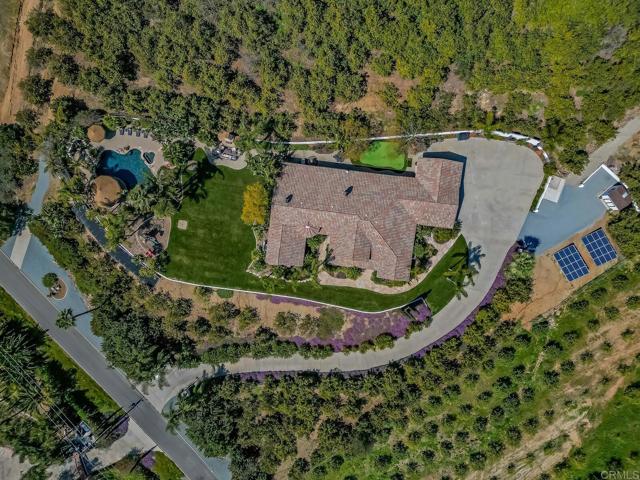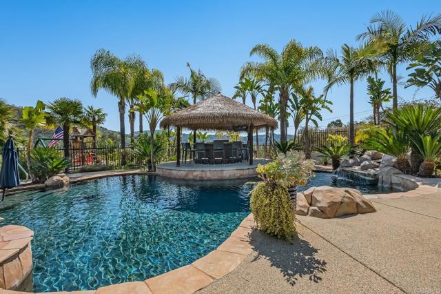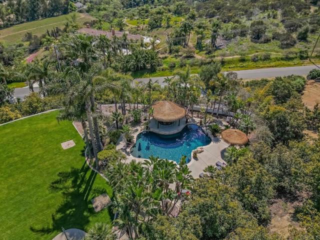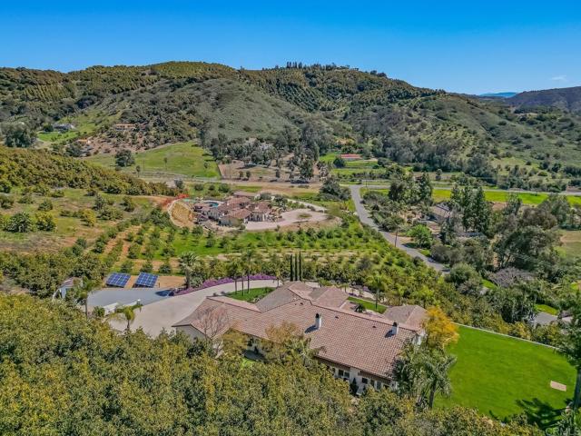 Luxurious estate nestled in the hills of De Luz with timeless style. From the harmonious blend of elegance and comfort to the resort style pool area, this is sure to embrace the life you ve been waiting for. The gourmet kitchen features, high-end appliances, top-notch finishes, and even a fireplace. The dining room with access outdoors is a perfect entertaining spot for small or large gatherings complete with wine room. The primary suite is a true retreat with double sided fireplace and elegant bath with jetted tub, sauna, spacious walk in closet, and separate shower. Each bedroom has its own bath. Outdoor features include several patios, one with it s own fireplace, for relaxing. The resort style pool and spa are solar heated. There s an awesome cabana with kitchen, bar seating and even TV plus many areas to lounge while enjoying wonderful Southern California weather. Beyond that are a playground, mature landscaping and also an avocado grove with ample extra parking below and possible additional dwelling unit on a cleared area towards the top.RV parking.Interested in this Listing?