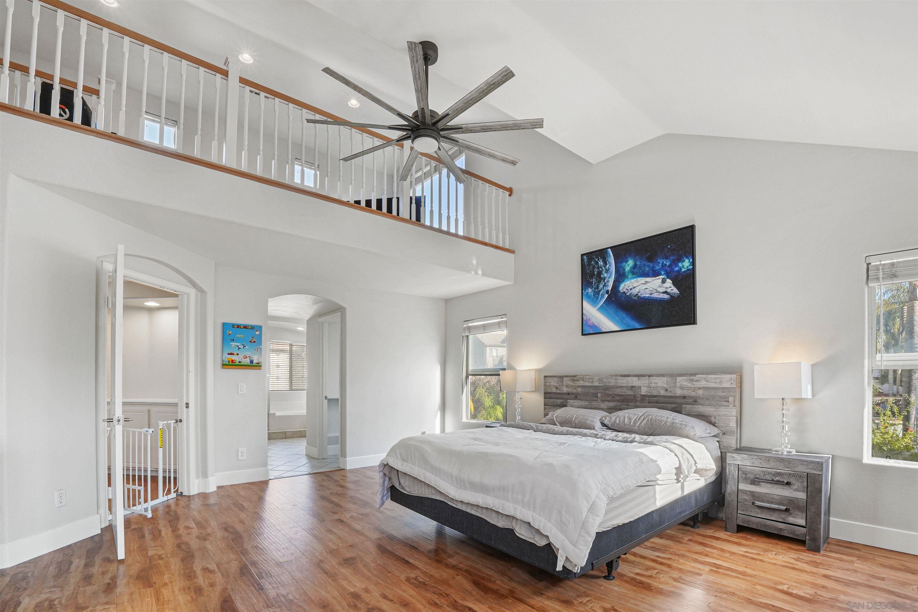 ***Exquisite 7-Bedroom Estate with Resort-Style Backyard, Discover the perfect blend of elegance, space, and convenience in this breathtaking 7-bedroom, 4-bathroom split-level estate (with possible paid-off Solar), ideally located within walking distance of top-rated schools, trendy restaurants, and even a 3D/4DX movie theater. A rare find, this expansive residence is ideal for larger or multigenerational families seeking comfort without compromise. From the moment you enter the grand circular foyer, you'll be captivated by the home's soaring 20-foot ceilings, abundant natural light, and thoughtfully designed layout. The spacious living room is both dramatic and welcoming, while the chef s dream kitchen features a large center island, sleek quartz countertops, a designer farm sink, and high-end LG double ovens perfect for entertaining. Retreat to the luxurious primary suite with its own cozy fireplace, an oversized 15x18ft footprint, and a private staircase leading to a unique and spacious loft ideal for a home office, reading lounge, or creative studio. Don't forget, there's a convenient first-floor bedroom. The backyard is a true paradise, featuring a sparkling, heated pebble-tech saltwater pool with a fun slide, surrounded by swaying palm trees and smart-home pool controls for ultimate convenience all accessible from your phone. ***Bonus: The Seller is offering a possible loan assumption at a 2.75% interest rate for the right Buyer, offering significant long-term mortgage savings!***Interested in this Listing?