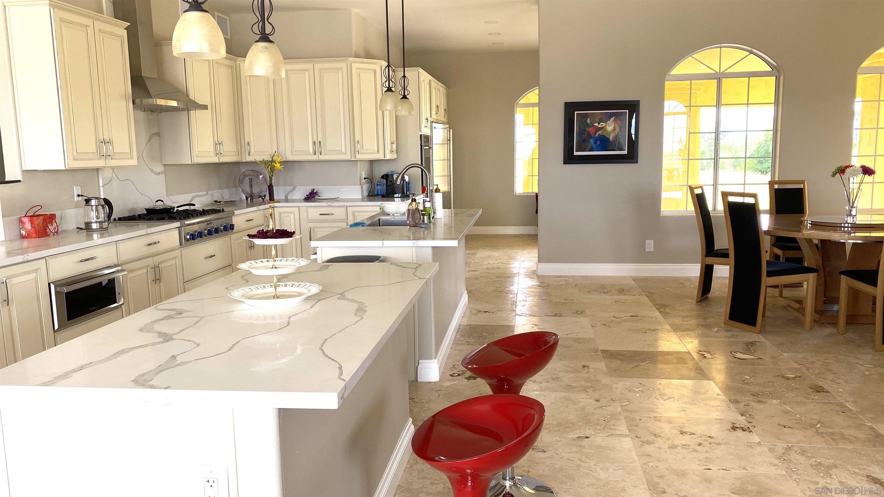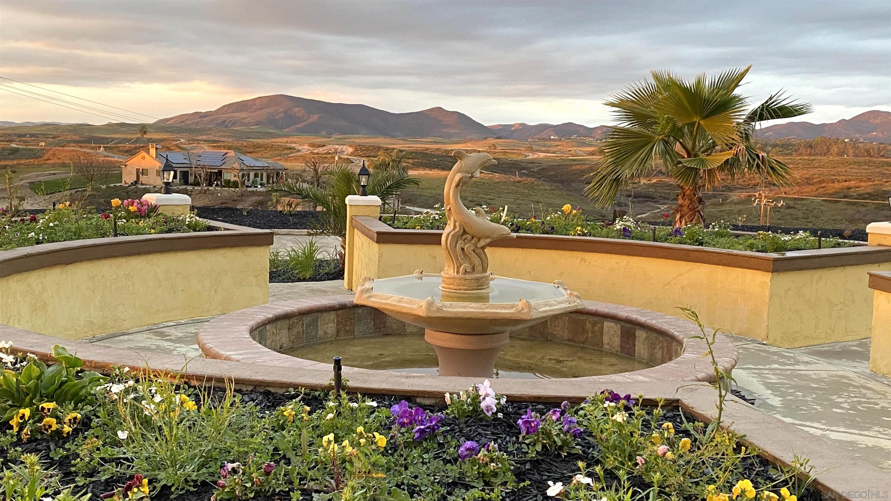 This property is a quintessential Villa with Spanish-Style, perched on hillside offering a stunning 360 degrees PANORAMIC VIEW. Located in the heart of Wine Country with walking distance to Lorimar Winery and South Coast Winery. The Villa over 5000 square feet custom build with about 2 acres mature production Cabernet Sauvignon on a 4.2 acres parcel and been completely renovated from top to bottom in 2020. Enjoy peaceful Wine Country living with Gorgeous View of sunrise with hot air balloons in the sky and infinitely changing of sunset with Mountain View. The Villa has 6 bedrooms, 6.5 bathrooms and 5 large garage. Each bedroom includes an en-suite bath and private patio with breathtaking view. Kitchen was meticulously designed with custom Carlton lines bisque glaze cabinets and quartz countertops. Equipped with a 6 burner Thermador range and built in warming drawer, double oven. 72 Sub-Zero refrigerator/ freezer and 450 bottles wine closet. The backyard has a 6 foot high custom iron fence and artificial grass with lower maintenance. There is an nice fountain with flower beds in the front yard. Very quiet and safe area and very nice neighborhood. Private gate and wide driveway. Must See!!!Interested in this Listing?