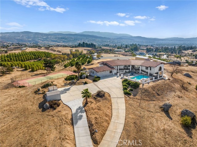 ** The LOWEST price per square foot home in Temecula Wine Country ** Pool | Tennis Court | Views | 2-Bedroom ADU | Brand New Windows | 5,719 Sq Ft + SO much more! Experience the ultimate in Wine Country living with this breathtaking custom home, perfectly situated on nearly 8 acres of usable land. Offering panoramic views of rolling vineyards, majestic mountains, and vibrant sunsets, this exceptional property is a rare gem. Designed for both luxury and functionality, the home boasts a resort-style backyard featuring a sparkling pool and an outdoor barbecue area perfect for entertaining while enjoying the spectacular surroundings. The expansive front patio, elegantly finished with stylish tile, wraps around the home and provides a serene space to take in the picturesque scenery of Temecula s renowned Wine Country. The multi-level interior is thoughtfully designed for multi-generational living, offering the convenience of a single-story layout on both levels. Throughout the home, you ll find exquisite custom pitched wood ceilings, rich wood and tile flooring, and an abundance of natural light. Recently upgraded windows enhance energy efficiency and showcase the breathtaking views from every room. Adding to its incredible appeal, this property includes an attached, fully renovated 2-bedroom, 1-bathroom casita a fantastic income-producing opportunity. The casita features modern shaker cabinets, sleek quartz countertops, herringbone-style flooring, and stunning stackable sliding doors that open to a private patio with a cozy fire pit. This patio overlooks the fully fenced tennis court, creating a private retreat for guests or tenants. The property is conveniently connected to public water and includes an additional storage tank for added peace of mind. Located within the highly sought-after Temecula School District and just a short drive to Temecula s top-rated wineries, this estate offers a perfect blend of tranquility, elegance, and investment potential. Don t miss the opportunity to own this exquisite Temecula Wine Country estate schedule your private showing today!Interested in this Listing?