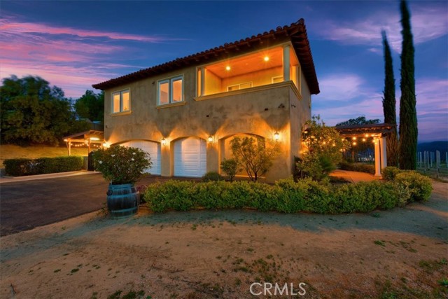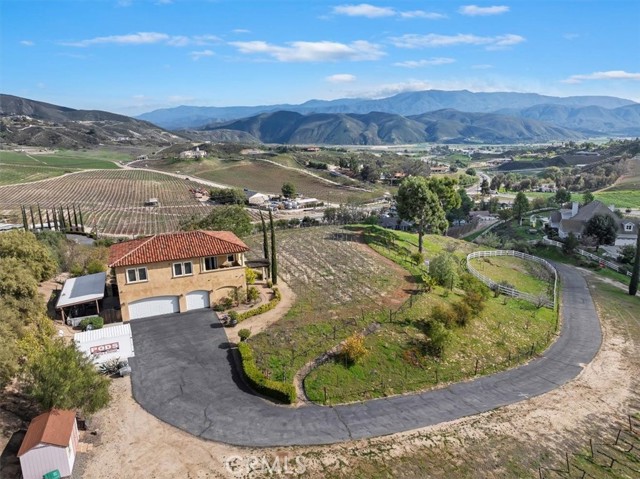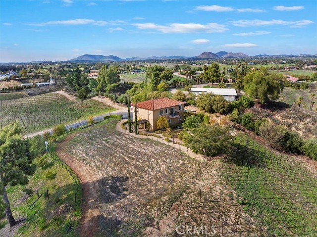 Serenely situated in the heart of Temecula's acclaimed Wine Country, this exceptional property spans over 10 acres and has three grape varietals of Cabernet Sauvignon, Cabernet Franc, and Zinfandel. With breathtaking 360-degree picturesque views of the rolling hills and lush vineyards backdropped by the majestic Palomar Mountain, this estate offers the perfect blend of tranquility and luxury for those seeking the quintessential wine country lifestyle along with comforts and convivence of renowned dining, vibrant retail hubs, endless entertainment, and recreational outdoor adventure and sport like golf, hiking, fishing as well as many other amenities! The charming two-story home boasts breathtaking balcony views on each side to capture the stunning vistas from beautiful morning sunrises with hot air balloons to flawless evening sunsets. Designed for both comfort and entertainment as well as offering expansive outdoor living areas ideal for family gatherings or peaceful solitude. The four-car garage and wine-making room uniquely set this property apart offering plenty of space for your wine-making needs, vehicles, and toys. As a bonus, there is a spacious pad, perfectly situated to accommodate expanding its existing structure, building a separate custom dream home, pool oasis, and much more! With zoning in the coveted Winery District, it has the potential to host class II winery uses to satiate your entrepreneurial desires. Whether you dream of creating your own private luxury estate to an artisanal winery, this unique property presents endless possibilities. Surrounded by award-winning wineries and stunning views, this prime location is a rare opportunity to own a piece of Temecula's wine-country paradise. Opportunities like this don't come often act swiftly to secure your own slice of heaven.Interested in this Listing?