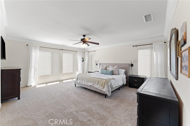 This beautifully upgraded home is nestled in the highly sought-after Harveston Community. At the heart of the home is the inviting family room, seamlessly connected to a sun-drenched kitchen featuring stainless steel appliances, a wine rack, double wall ovens, and a spacious island with seating. With 5 bedrooms, including a lower-level room with its own en-suite bathroom, this home is perfect for guests or can easily be used as an office. The expansive primary suite offers a luxurious retreat with a jetted soaking tub, dual sinks, and a walk-in closet. Step outside to the backyard, where you'll find a stamped concrete patio, a covered area, beautiful planters, and a grassy lawn an ideal space for relaxation and entertaining. Additional highlights include two new dual A/C units, a solar system with an assumable note and a low monthly payment. The home also offers an unbeatable lifestyle with a LOW HOA fee, granting access to an array of fantastic amenities: a 17-acre lake park, fishing, pedal boat rentals, scenic pedestrian walkways, a Jr. Olympic-sized pool, spa, tot lots, a lakefront amphitheater, a 19-acre sports park, a splash park, picnic areas, and a lake house perfect for hosting events. Plus, an elementary school is conveniently located within the community.Interested in this Listing?
