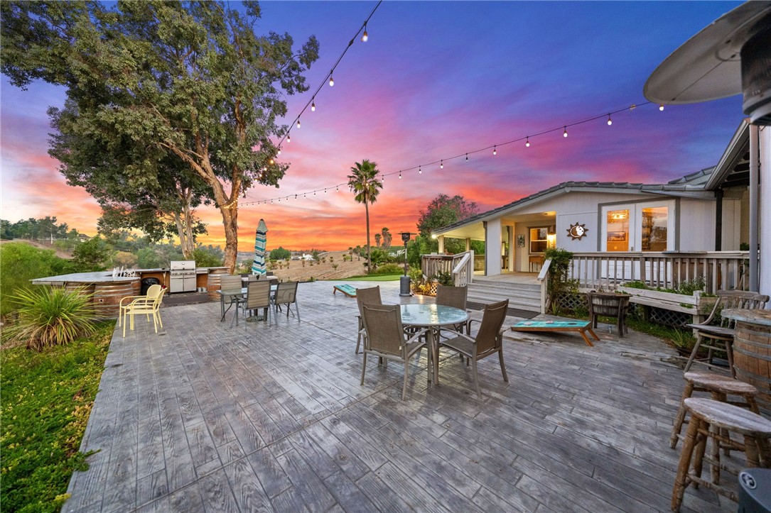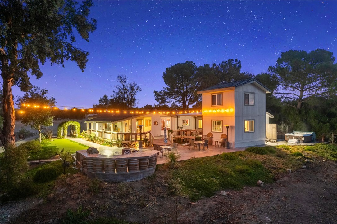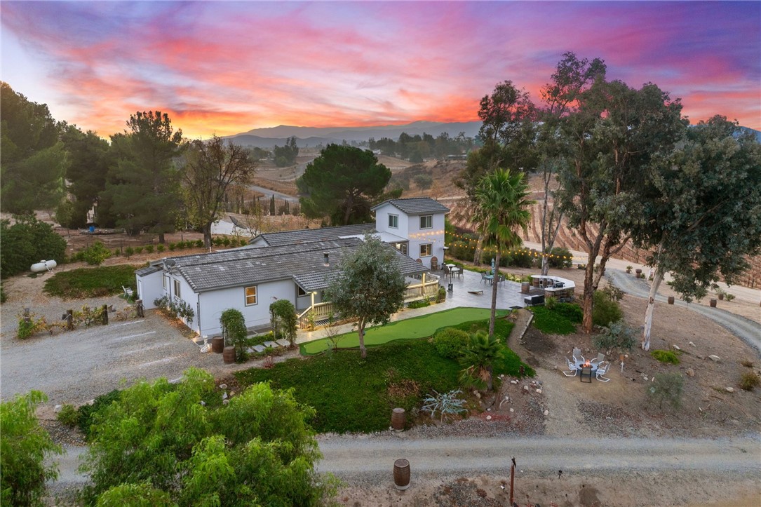 BUSY, BUSY, BUSY AIRBNB IN PRIME TEMECULA WINE COUNTRY LOCATION FOR SALE! UPDATED IN 2017! Don't pass this one by, this by far is not your typical manufactured home...PLUS THERE'S A PERMITTED STICK-BUILT ADDITION with ROOM to EXPAND on the SECOND STORY!! Perched atop a scenic hill in Temecula Wine Country offering breathtaking panoramic views and ample space for everyone with 6 bedrooms and 4 bathrooms, including two with en-suite bathrooms!! Perfect for hosting or accommodating your outdoor lifestyle, the property boasts RV, boat, and toy parking with convenient hookups (water, black tank pump-out, and 30 & 50 AMP connections). A sprawling wraparound deck and a stamped concrete patio create the ultimate setting to soak in vibrant SoCal sunsets or marvel at early-morning hot air balloons drifting by. Enjoy an outdoor paradise with a custom wine barrel bar, BBQ station, and cozy firepit. Let the good times roll with a horseshoe pit, a bubbly jacuzzi overlooking vineyard-draped hills, and a 3-hole putting green for endless entertainment. Step inside to find an open and inviting great room with built-in window seats perfect for a quiet reading nook or sipping morning coffee. A large built-in desk with ample storage makes the space as functional as it is charming. The oversized kitchen is a chef s dream, featuring granite countertops, an island, stainless steel appliances, a built-in wine rack, abundant cabinet space, and double doors leading to the deck perfect for seamless indoor-outdoor dining. The luxurious primary suite is a peaceful retreat, bathed in natural light with a spacious walk-in closet and built-in dresser. The en suite bathroom includes a beautifully oversized walk-in shower, ideal for unwinding after a day of wine tasting or exploring. For your convenience, the property also features an electric car charging station, two metal sheds, and two 40-foot shipping containers for plenty of storage. This property has a proven track record as an Airbnb and offers endless possibilities for your personal enjoyment or as an investment. Schedule your private tour today!Interested in this Listing?