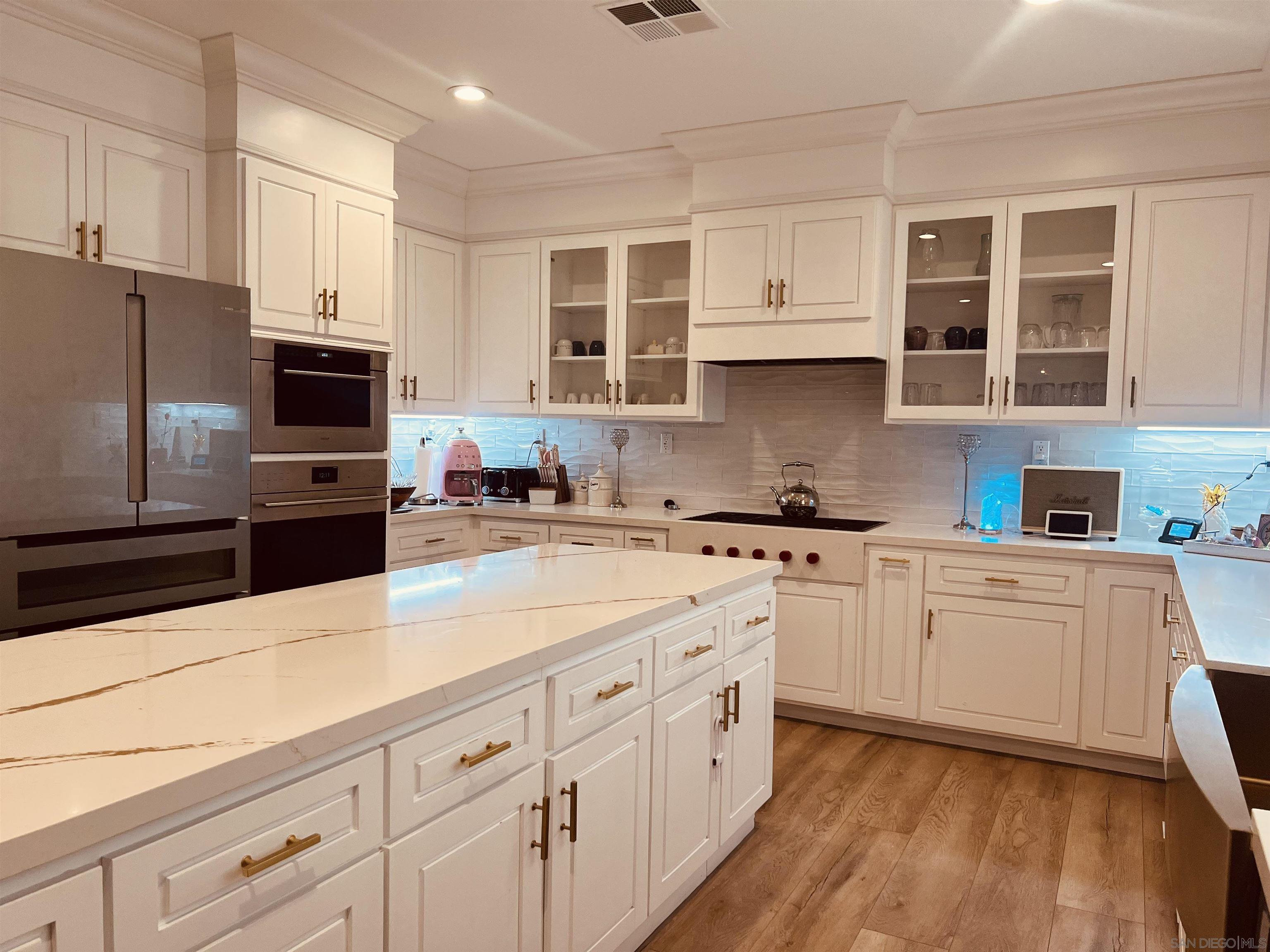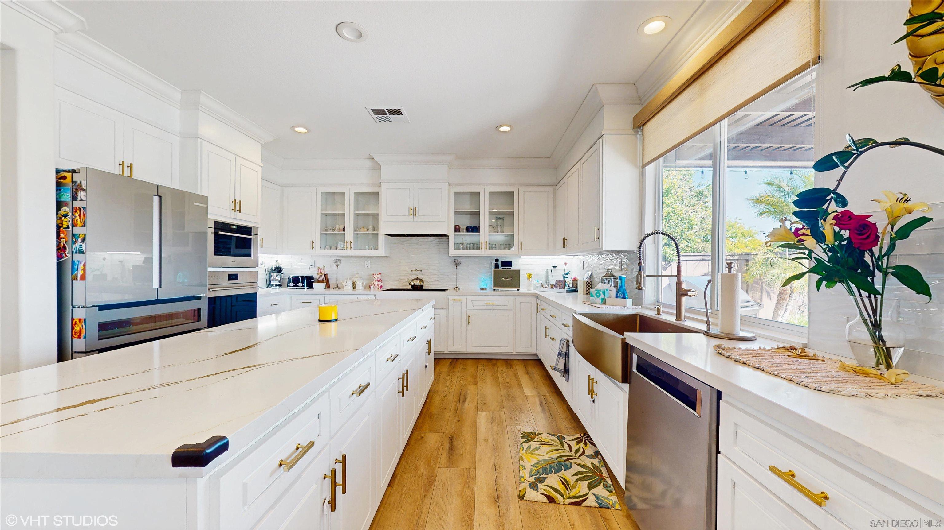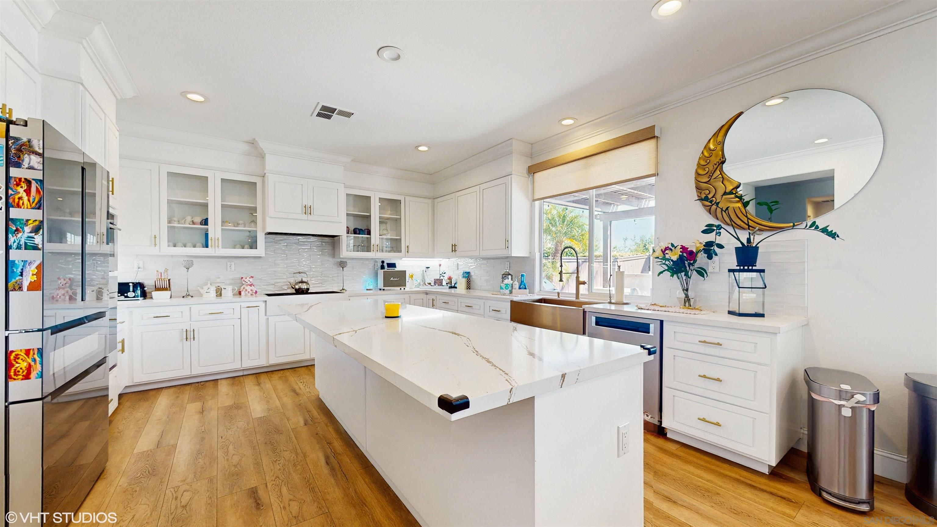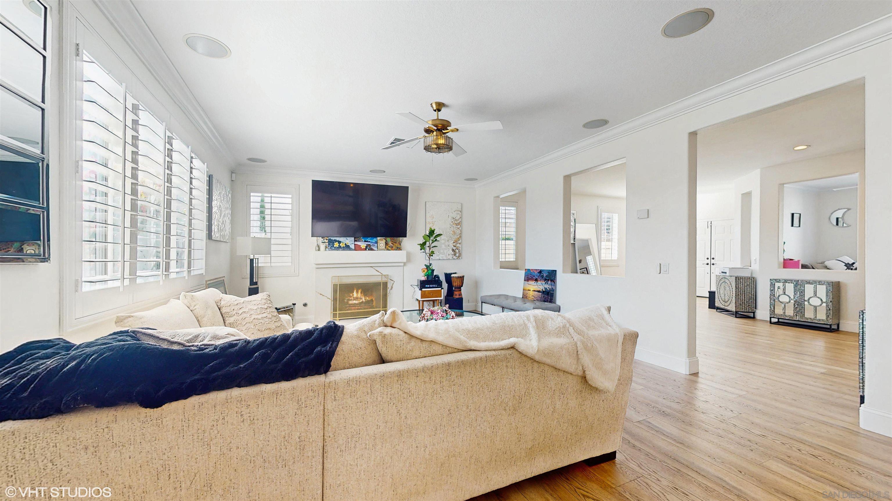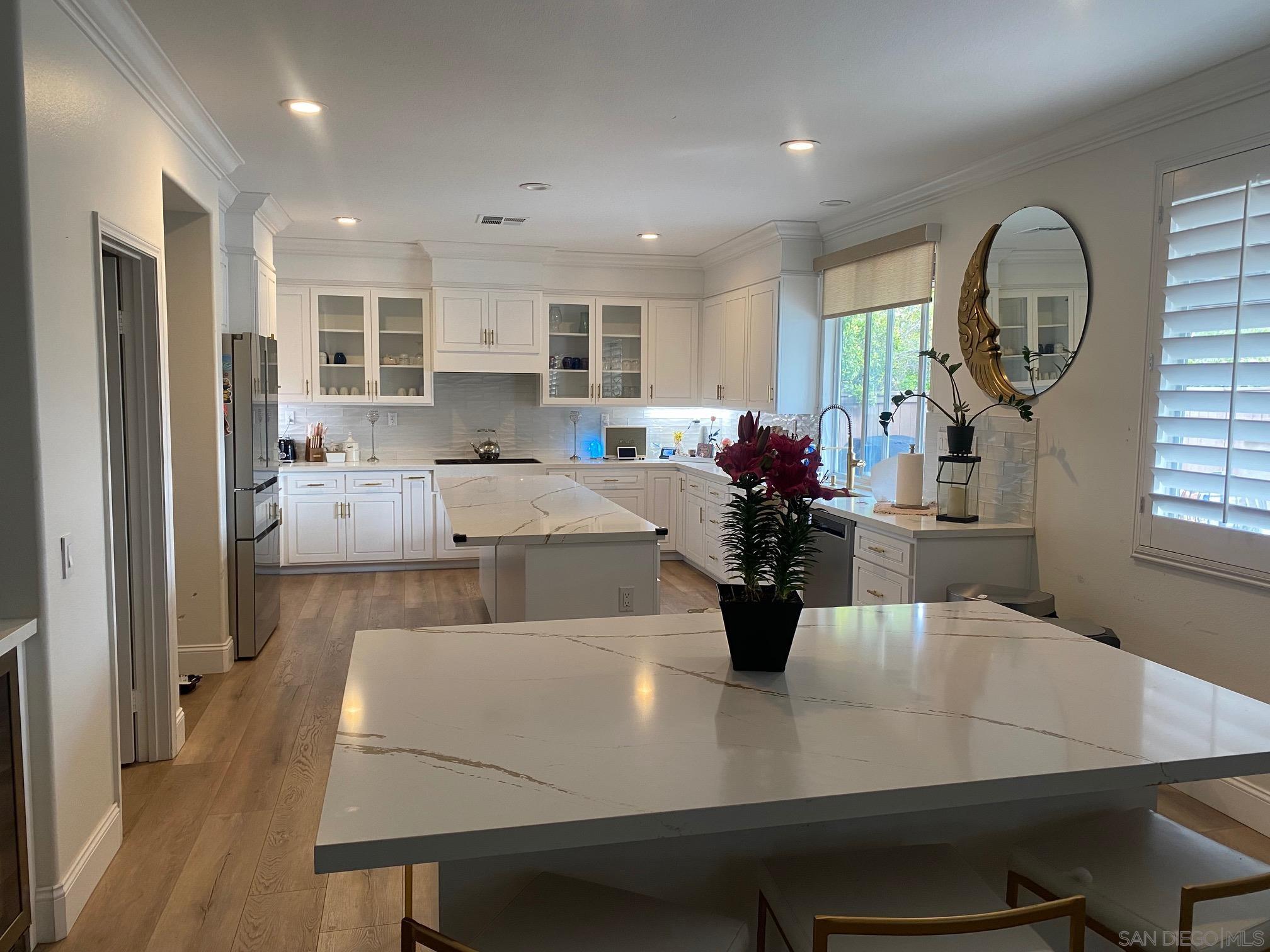 Located in the beautiful and coveted Crowne Hill Community, tucked away on a much desired cul-de-sac, with award winning schools, and just minutes from the local wineries. This elegant Mediterranean beauty is in the much desired area of Temecula! Very close to shopping. This features 4 bedrooms + Office/potential 5th bed + Loft/Flex Room, and low-maintenance grounds. Oversized driveway+3 car garage. Outdoor entry fountain as you head through the double doors into voluminous ceilings, luxury wide plank LVP flooring and shutters throughout with recessed LED lighting & much more! After entering, on your left you'll find a versatile office space &/or potential 5th bedroom & bathroom. Stylish formal living room warmly leads into the family room. Fireplace in the family room and opens up to the heart of the home, the kitchen. Completely renovated for a multi-generational family. A Chef's Dream come true, with two Silestone islands, waterfall legs and gold farmhouse sink, under-cabinet lighting and state-of-the-art WOLF appliances for creating memorable meals. Frosted walk-in pantry, commercial grade dual beverage coolers and wine fridge. Host legendary dinner parties in your private dining room. Head upstairs to 4 generously sized bedrooms + Loft/Movie Room w/ Surround Sound. Oversized Master Retreat has bonus Executive Office/Gym/Nursery space, cathedral ceilings, dual sinks and large walk-in closet.Interested in this Listing?