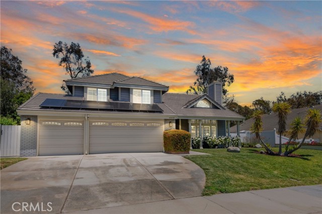 Spacious 4 bed, 2.5 bath home located within the desirable Rancho Highlands community is ready for its new owner. Offering fantastic curb appeal, an attached 3-car garage with new driveway, and Solar Panels. The interior offers beautiful cathedral ceilings, plantation shutters, recessed lights, and a custom paint scheme. Enter into the living room with fireplace. The dining room sits just off of the living room and has a chandelier, and the gorgeously updated kitchen features high-end stainless steel appliances with Jenn-Air 6 burner cooktop/range, full-wall backsplash, stunning countertops, and a center island with breakfast bar seating, pendant lights, and a slider to the backyard. The separate family room also has a fireplace, a slider to the backyard, and there is a convenient wet-bar area - perfect for entertaining guests! The primary suite is located on the 1st floor and has a private slider to the backyard as well as a huge walk-in closet and the ideal ensuite with dual sinks, soaking tub, a separate shower, and new toilet with bidet! The laundry room, and a half bathroom for guests completes the main floor. Upstairs you are greeted with a bonus loft area - great for a reading nook or office space and 3 secondary bedrooms, all generously sized, with a full-size hall bathroom to share. Enjoy the private backyard with lots of new plants and many trees including 3 varieties of Guavas, Mexicola Avocado, 2 varieties of Banana trees, Star Apple, multiple varieties of Lemon and Limes including Australian Finger Lime, Pomegranate, Pomelo, Mulberry, Loquat, and Mature Tangelo and Nectarine trees! Plus many plants including Pineapples, Kumquat, 2 varieties of Blueberry, thornless everbearing Blackberries, Red Dragon Fruit, multiple mature Grapes, multiple Hibiscus flowers, large and small Birds of Paradise plants and so much more! Additional upgrades also include a Brand new Furnace and AC Unit, new toilets, new backyard drainage, rewired sprinkler system, removal of old trees. Conveniently located near schools, shopping, dining, and more!Interested in this Listing?