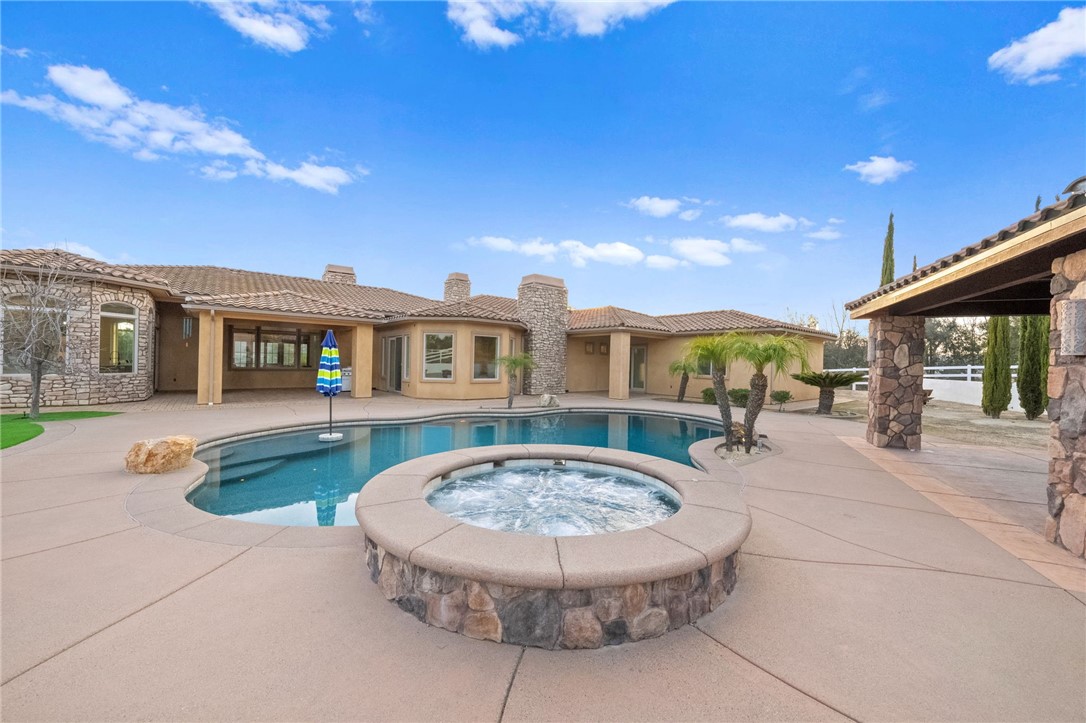 SELLER WILL CONTRIBUTE TOWARD BUYER'S RATE BUY-DOWN/CLOSING COSTS WITH ACCEPTABLE OFFER! SENSATIONAL ENTERTAINER'S CUSTOM HOME WITH INCREDIBLE VIEWS! Sitting on 3.25 acres with a private gated entry and circular driveway, setting the tone for what s inside a perfect blend of style, comfort, and entertainment. The remodeled chef's kitchen is a showstopper, featuring quartz countertops, a built-in refrigerator, a 6-burner hooded range, double ovens, dual walk-in pantries for ample storage, and wrap-around bar seating. Two dining areas accommodate both formal and casual gatherings and offer versatile entertaining spaces. Vaulted wood-beamed ceilings frame the family room, with scenic mountain vistas to the west and sparkling pool views to the east, complemented by a stunning fireplace with a raised hearth and 3 sets of French doors that open to the inviting front courtyard. The formal living room features custom-built-ins and a second fireplace, creating a cozy yet refined space. Relaxation awaits in the primary suite with direct patio access, an en-suite bath featuring a walk-in shower with multiple showerheads, an oversized soaking tub, and dual walk-in closets with custom organizers. The bonus room with pocket doors offers a built-in bar, fireplace, and seamless backyard access, making it the perfect indoor/outdoor entertainment space. Designed for comfort and versatility, the home includes 4 secondary bedrooms, each with walk-in closets, 1 with an en-suite bathroom, 2 with a shared Jack & Jill bathroom, and 1 on the opposite wing of the home with access to a full bathroom. A thoughtfully designed mudroom built-in adds family convenience for quick drop-offs and easy organization. A 5-car garage boasts epoxy flooring, a dedicated storage room (which could easily be converted to a home office or wine room), and a roll-up rear door. Stepping outside to your resort-style backyard, endless entertainment awaits, featuring a PebbleTec saltwater pool & spa, half-court basketball, in-ground trampoline, a cabana with a fireplace, a paver patio, and lush, mature landscaping featuring a variety of fruit trees amongst the pepper, olive, and cypress trees. There is even room to add an ADU or Pickleball Court. Offering easy access to Wine Country, Old Town, award-winning schools, shopping, dining, and entertainment this exceptional estate offers an unmatched lifestyle.Interested in this Listing?