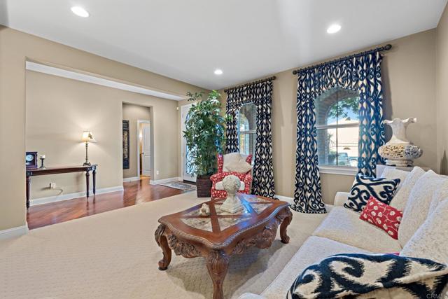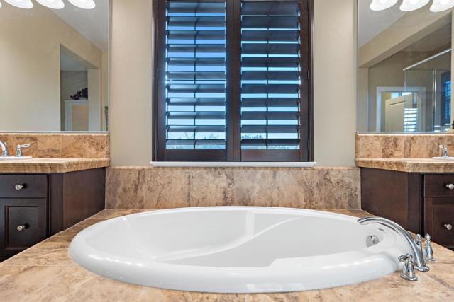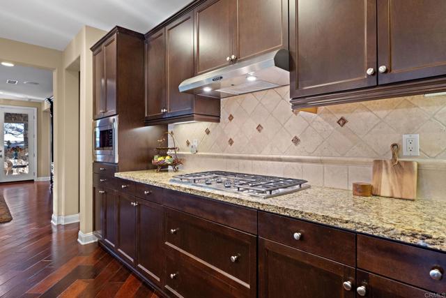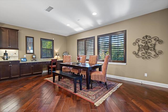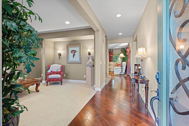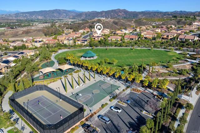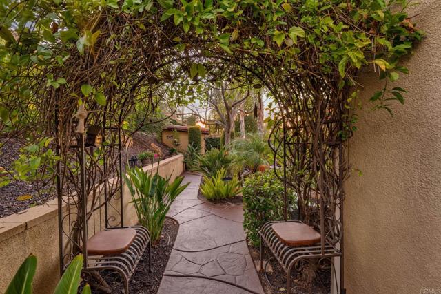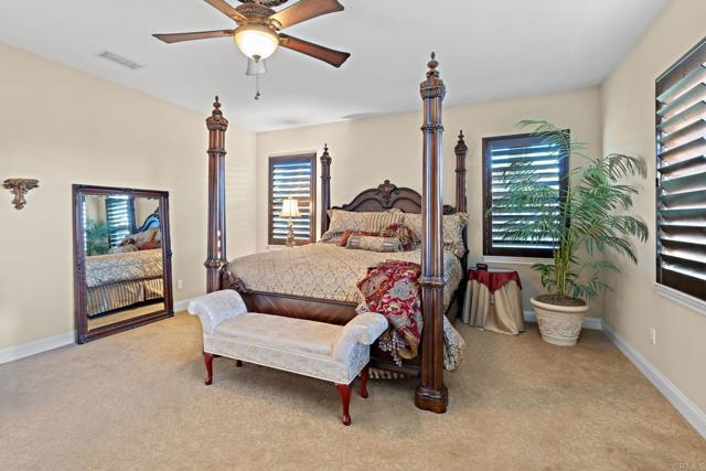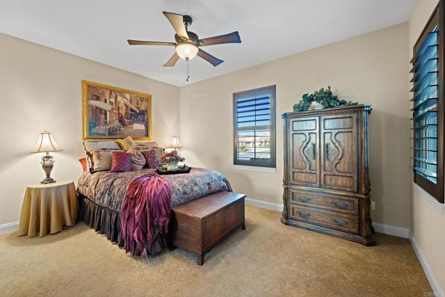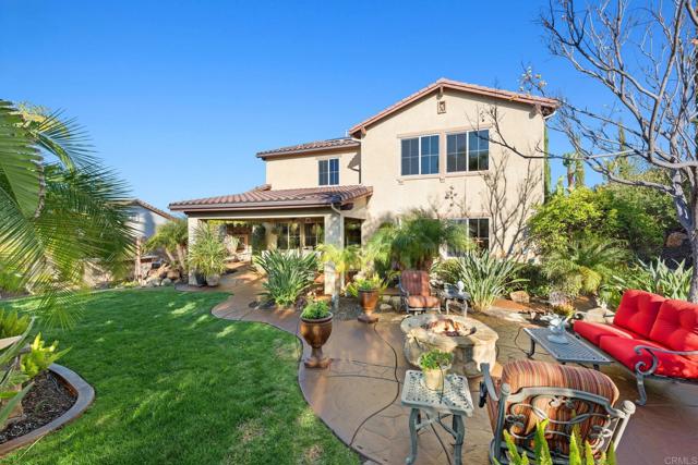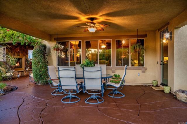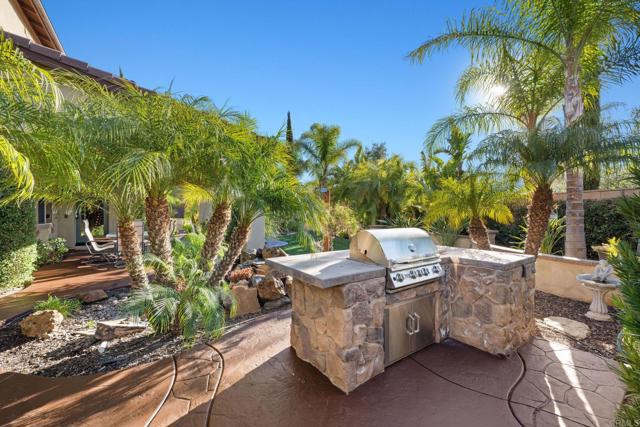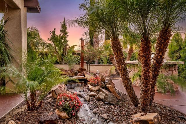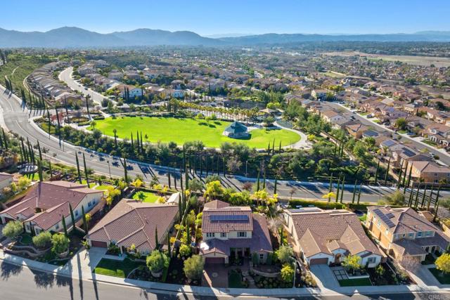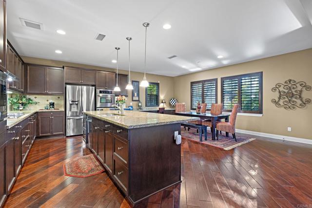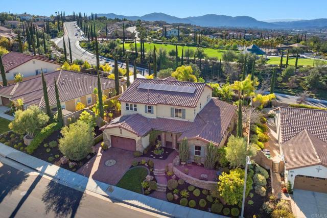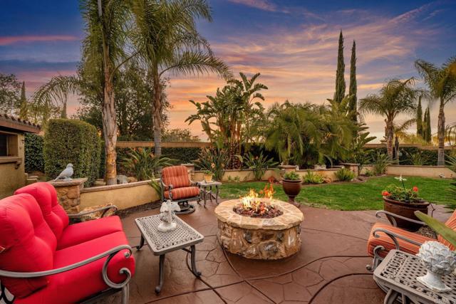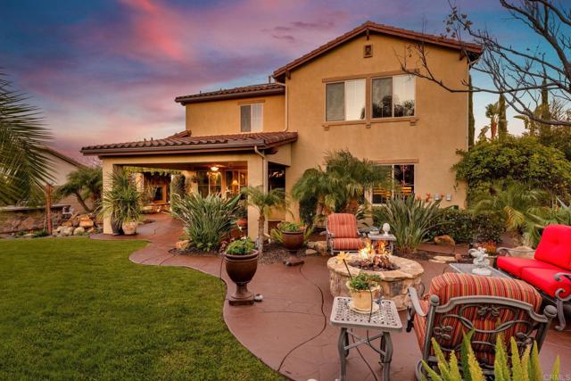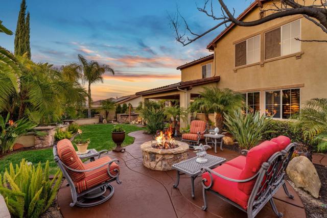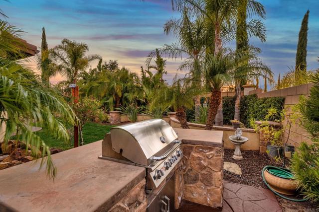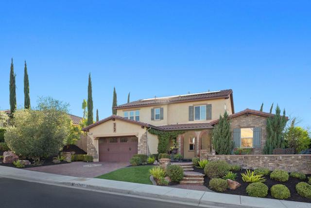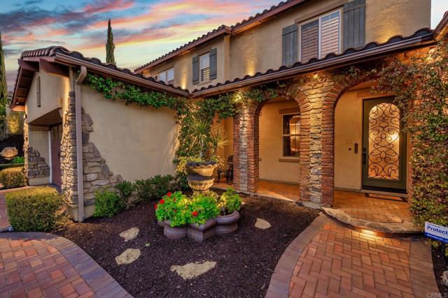 This Italianate villa in the desirable Morgan Hill area of the Temecula wine country could easily win "prettiest girl on the block" ... apparent from the moment you drive by the gorgeous exterior. The captivating front yard is terraced with a combination of brick and natural stone creating a meandering entry, a darling front patio & a rich brick driveway imbued with a central stone mosaic. Immediately you KNOW you're in the wine country, and you FEEL transported to a well loved European countryside home. Inside, gleaming dark wood plank flooring greets guests in a formal entry. IF you're tired of the same old greyish tan lvp, and miss seeing rich wood, you'll love these mohagany toned planks. Downstairs ensuite bedroom and an elegant guest powder room graced with damask walls and furniture style vanity. To the left is a spacious & elegant formal living room. Next: a formal dining room with stone veneer offers a warm wine country dining experience. The entire downstairs has been freshly painted in "Accesible Beige" by Sherwin Williams, creating a more light airy feel. Just outside the dining room, is a custom & open outdoor sitting area opened on one side, where a large outdoor stone fireplace warms you and your guests while chat in cozy outdoor seating. Adding to the Indoor-Outdoor flow of this home, a "semi outdoor" California room/dining area where you have your grilled entree fresh off the outdoor BBQ/kitchen. Near each outdoor room, you will hear a trickling stone waterfall & you will look upon the verdent backyard oasis as light filters through large palm frauns and giant birds of paradise. A large outdoor firepit keeps you and guests warm on cooler nights while the sunset paints the sky over the backyard with bright pink & purple hues. The spacious family room with wood floors, has extra large built-ins housing TV, media, drawers, display shelving & gas fireplace. This opens up to the kitchen area with spacious dine-on island, wood floors & granite counters. Large Plantation shutters throughout. Kitchen has a 5 burner/grill gas cooktop, convection oven,butler pantry, large pantry & stainless appliances. The kitchen and great room have large windows looking over the backyard, California room & flaming outdoor fireplace area. Upstairs, a loft can be used as a teen media or study room or play room for younger kids. There are 2 bedrooms with bath in-between with granite counters/double sinks & stone flooring. The spacious primary suite looks over the beautiful backyard through more planatation shutters. The large bathroom has soaking tub, separate shower and floors of Versailles set travertine. A huge walk in CA closet will make the lady of the house happy! All of this is only the house on its quarter acre paradise, but AROUND it: 1. The BEST schools in Temecula 2. The Morgan Hill Clubhouse & Community area with: pool, spa, pickleball, tennis courts, basketball, Clubhouse, kids play areas, BBQs & more. 3. Only 2 miles from the gorgeous preeminent wine country of southern California. Have it ALL at 44249 Reidel Street!Interested in this Listing?