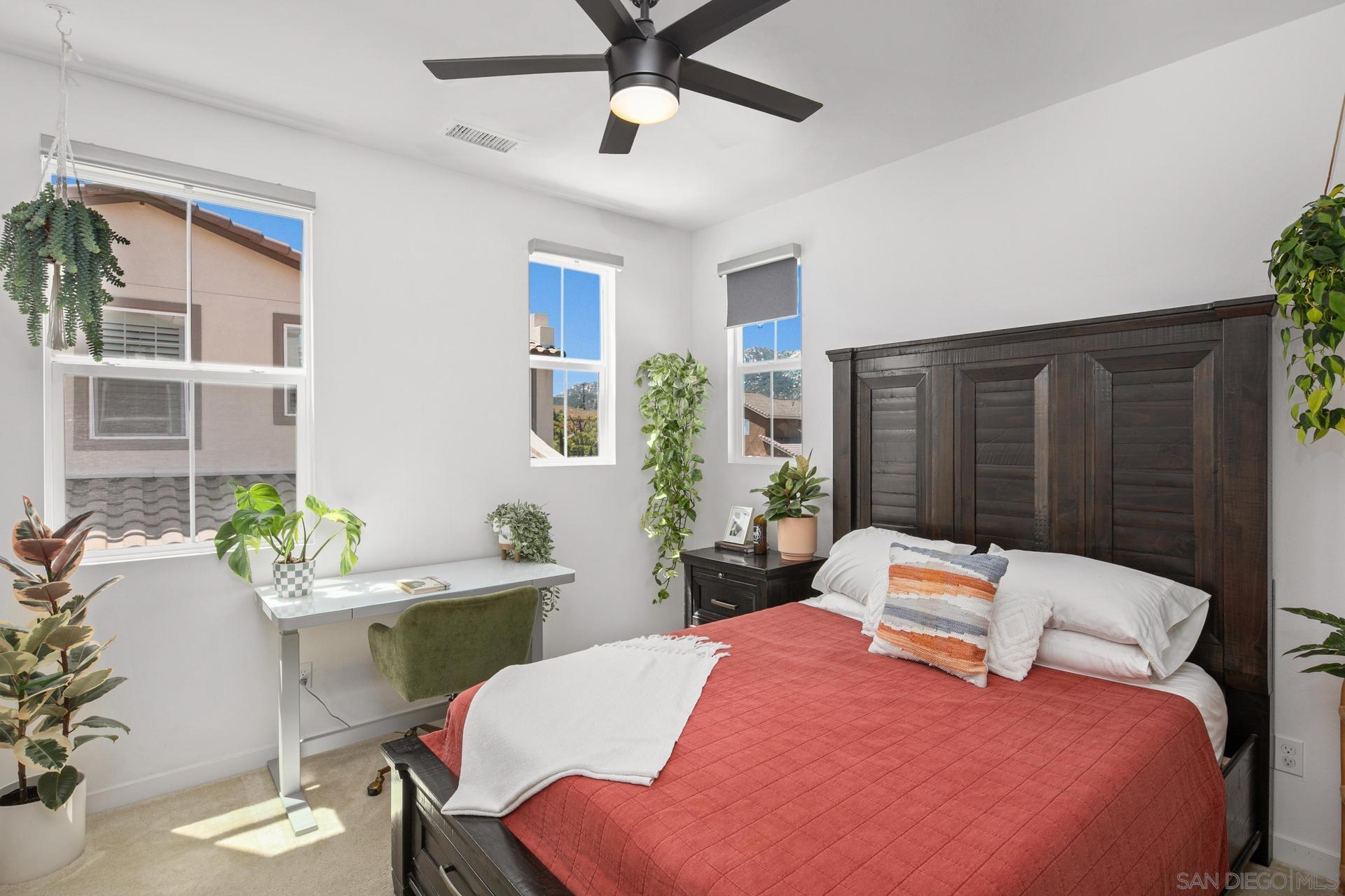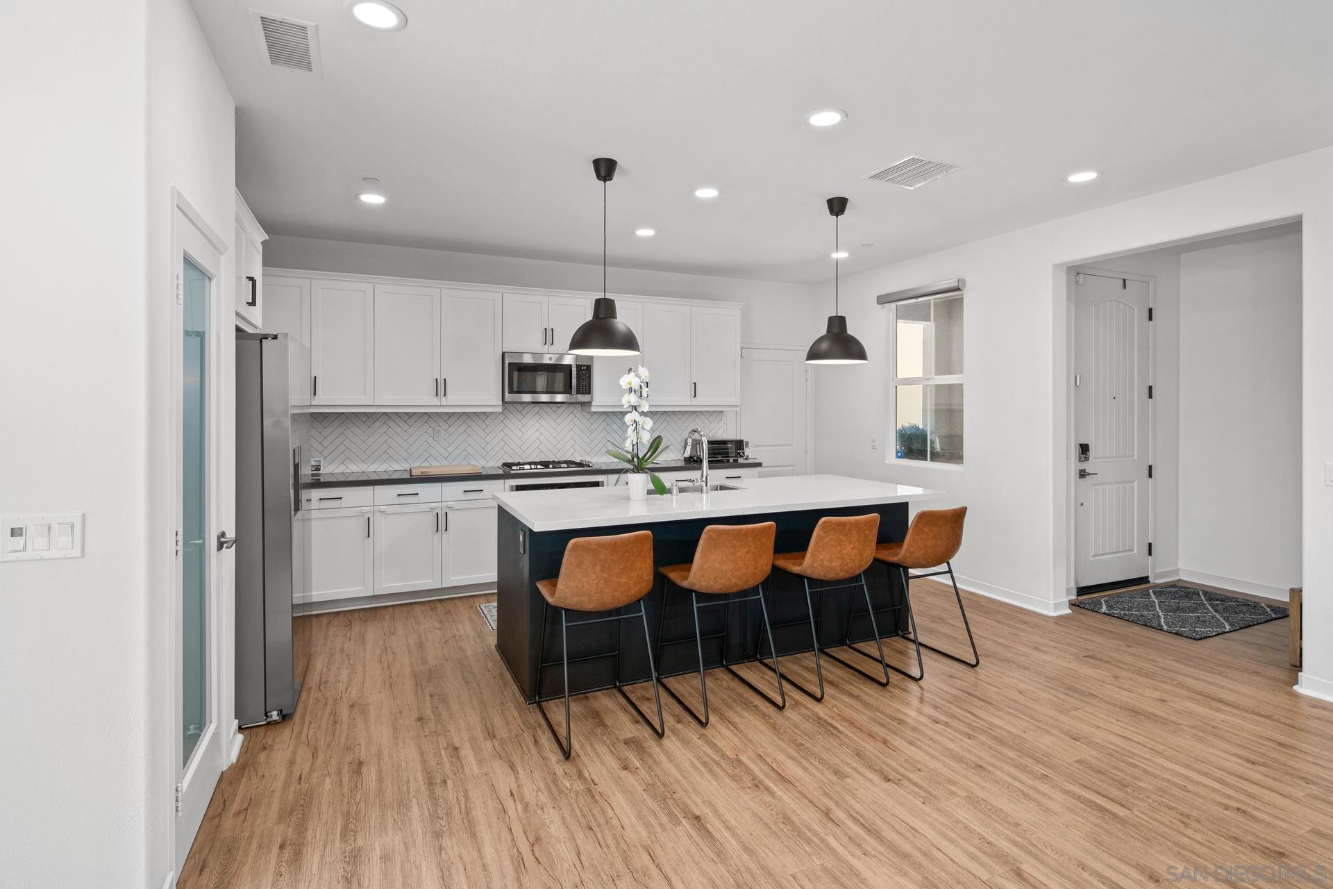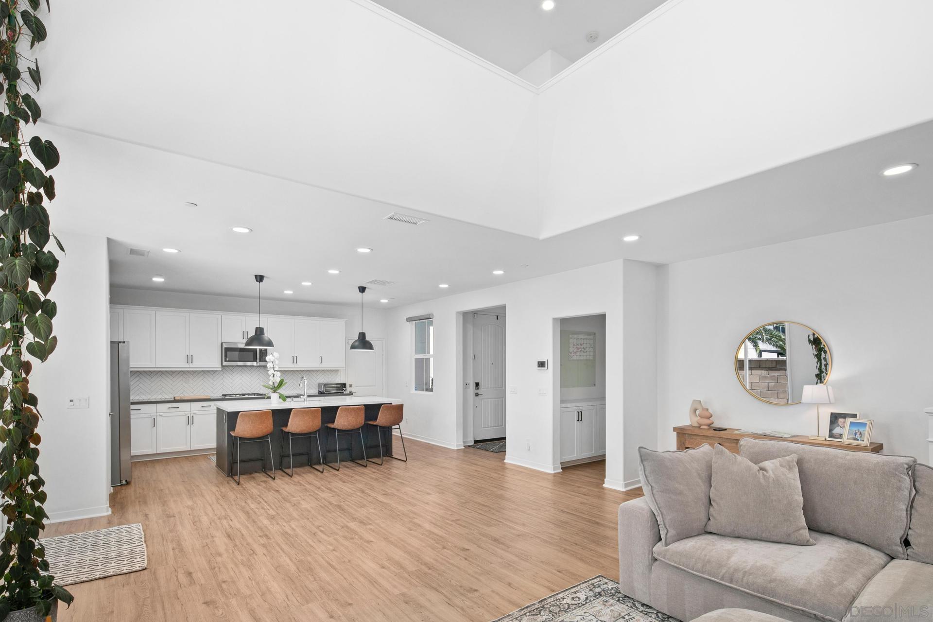 Welcome to this stunning 2021 build home with owned solar in the highly sought-after Rancho Soleo gated community! Prepare to fall in love with this beautifully maintained 3-bed, 2.5-bath home that offers the perfect blend of style, comfort, and convenience. Step inside to find neutral paint and carpeting, luxury vinyl plank flooring, and an open floor plan that s perfect for modern living. The spacious main-floor Primary Suite large living room features soaring two-story ceilings and flows seamlessly into a designer kitchen complete with white cabinetry, quartz countertops, stainless steel appliances, and a large custom kitchen island. Upstairs, a generous loft, with attached balcony, welcomes you to the second level, along with two large bedrooms, a full bath with double vanities, and a laundry room. Enjoy energy savings with paid solar panels and the ease of Smart Home Technology, WiFi-enabled thermostats, smart locks, and garage door openers. The garage also includes an upgraded 240-volt outlet for Level 2 EV charging. Rancho Soleo offers resort-style amenities, including a secure gated entrance, pool and spa, clubhouse, dog park, and several mini-parks throughout. Enjoy a 5-minute walk to Friendship Park, which has a fenced playground, courts, soccer field, trails, and bathrooms. Located in the top-rated Temecula Valley School District, including the coveted Great Oak High School, and just minutes from the 15 Freeway, Pechanga Resort, Temecula Creek Golf Club, and Old Town Temecula.Interested in this Listing?
