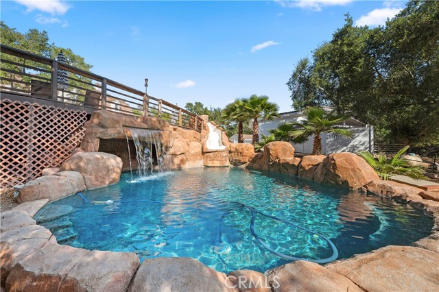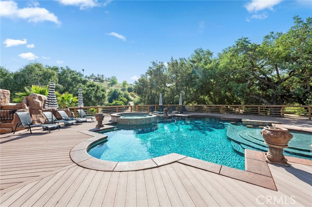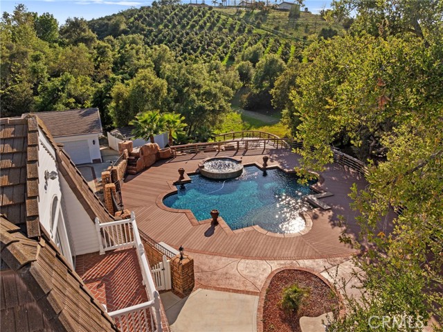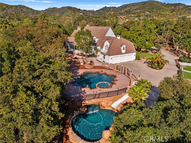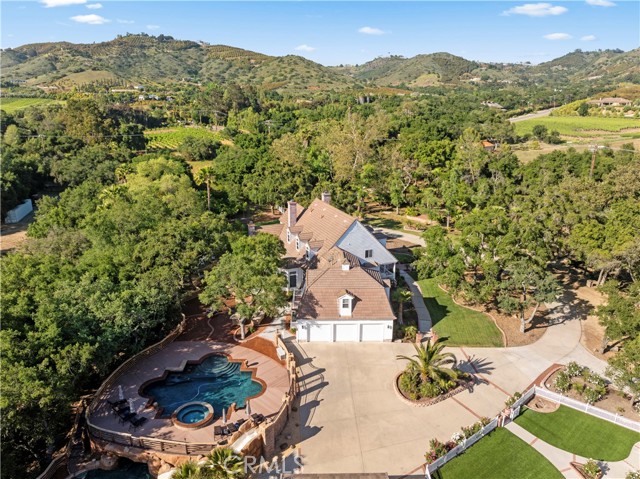 Welcome to Enchanted Oaks Estate, an extraordinary sanctuary where luxury meets serenity, and privacy reigns supreme. Nestled within the prestigious De Luz Hills of Temecula, this remarkable 7.53-acre estate invites you to indulge in a life of unparalleled refinement. Majestic oak trees, a peaceful year-round creek, and enchanting waterfalls create a picturesque backdrop, enhancing the natural beauty of the property. At the heart of the estate lies a stately Cape Cod Colonial residence, encompassing 5,087 square feet of meticulously crafted living space. A charming 2,200 square-foot guest house, all on one level, harmoniously complements the main home. 8-car total garage space also offers abundant built-in storage. The main residence features five elegantly appointed bedrooms, including an exquisite bonus suite, accessible by a private staircase and featuring a romantic Romeo and Juliet balcony with sweeping sunset views. The first-floor primary suite offers an intimate retreat, complete with a stone fireplace, a generously sized walk-in closet, and a spa-inspired bathroom. The newly renovated chef's kitchen serves as the perfect space for culinary pursuits, while the spacious living areas highlighted by a soaring two-story brick fireplace provide an inviting atmosphere for both family gatherings and refined entertaining. Step outside and discover a two-story, resort-style pool complex, where two pools are connected by an exhilarating waterslide, complemented by a private grotto, cascading waterfalls, and an oversized spa. This outdoor paradise extends to an outdoor kitchen, ideal for poolside dining and entertainment. The detached guest house exemplifies comfort and independence, featuring two bedrooms, two-and-a-half bathrooms, two private offices, large walk-in closets, and an expansive laundry room with generous storage. Designed with accessibility in mind, this residence offers the perfect balance of privacy and connection. The estate's grounds are nothing short of breathtaking, with roses gracing the front of the home, and stately oak trees, coupled with a tranquil stream, forming an idyllic backyard oasis. Embrace the outdoors with a built-in barbecue, private deck, and unparalleled sunset vistas. Wander through the meticulously maintained grove of over 250 avocado trees, or relax on one of the many covered porches or gazebos scattered throughout the property. Enchanted Oaks Estate is a true masterpiece.Interested in this Listing?