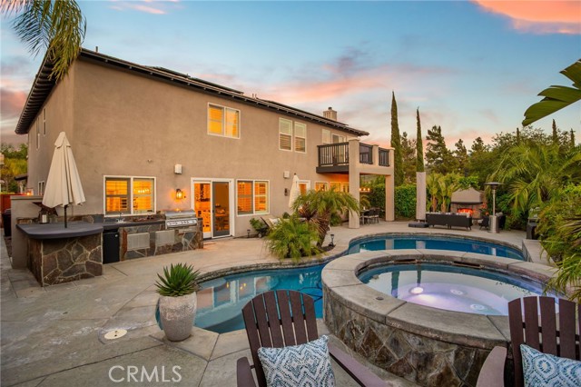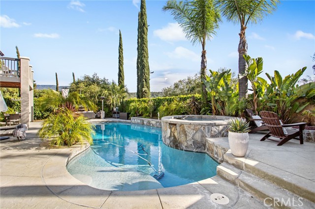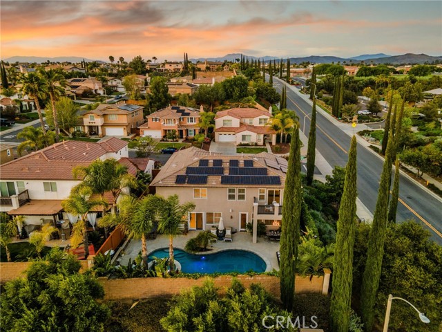 **Entertainer s Dream Home with Private Pool, Paid-Off Solar & Backyard Paradise***This stunning Morgan Hill home is the perfect blend of designer elegance, modern comfort, and entertainer s luxury. From the moment you walk in, you ll be captivated by the light-filled open floor plan, custom plantation shutters throughout, and beautiful window and walkway casings that add a touch of refined sophistication to every room. Stylish engineered hardwood flooring sets the tone, complemented by crown molding, recessed lighting, ceiling fans, and high-end custom lighting fixtures throughout bring an added flare. Featuring a stylish formal living and dining area, The heart of the home is the chef-inspired kitchen, featuring an oversized marble island with seating for four, sleek subway tile backsplash, black granite countertops, crisp white cabinetry, stainless steel appliances, apron-front farmhouse sink, and a walk-in pantry. Flowing seamlessly into the spacious family room with a custom built-in entertainment center and gas fireplace, the layout is ideal for both intimate evenings and lively gatherings. A private office/den enclosed with custom barn doors offers a quiet retreat for work or study. Downstairs also includes a full guest suite with private bath, plus a separate powder room for added convenience. Upstairs, unwind in the luxurious primary suite complete with a cozy retreat area, spa-like bath, expansive walk-in closet, and your own private balcony perfect for sipping coffee and soaking in the peaceful views with a good book. A large loft offers additional living space, and each secondary bedroom is generously sized two share a Jack-and-Jill bathroom, while the other features a private ensuite bath. Step outside into your own backyard resort an entertainer s dream with a sparkling pool and spa, covered patio area, built-in BBQ island with bar seating, a cozy fire pit, and a separate outdoor fireplace. Multiple seating and conversation areas offer endless options for relaxing or hosting under the stars. Located in the desirable Morgan Hill master-planned community, within walking distance to parks and award-winning schools, and just minutes from local wineries, golf courses, and the renowned Pechanga Resort & Casino. Topped off with a split 3 car garage, a paid-off Tesla solar system and backup battery, this home is as efficient as it is breathtaking.Interested in this Listing?