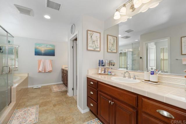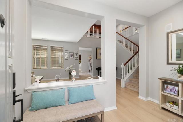 Welcome to this beautifully upgraded two-story home tucked away on a peaceful cul-de-sac in the prestigious Wolf Creek Community of Temecula. This spacious residence offers 5 bedrooms and 3 full baths, including a convenient first-floor bedroom and full bath ideal for guests or multi-generational living. Designed with both comfort and efficiency in mind, this home boasts numerous upgrades, including laminate flooring, a HALO whole-house water filtration system, and 29 solar panels with a NeoVolta 14 backup battery. The garage is fully finished with polyaspartic-coated floors and its own wall-mounted HVAC unit for climate control. The low-maintenance backyard is complete with artificial turf, fruit trees, and a covered patio complete with dual ceiling fans and lighting. The elegant layout features high ceilings, a formal living room and a large formal dining room with views of a tranquil courtyard, perfect for indoor-outdoor entertaining. The chef s kitchen boasts a grand granite island, abundant cabinetry, stainless steel appliances including a 4-door French door smart refrigerator, and a cozy breakfast nook. Upstairs, you'll find four generously sized bedrooms as well as an office nook. The master suite features dual vanities, a soaking tub, separate shower, and a large walk-in closet. Two bedrooms open to a private balcony with mountain views. Additional features include dual HVAC systems, a spacious 3-car tandem garage [651 sq ft], and a dedicated laundry room equipped with a smart washer and dryer. Conveniently located just minutes away from the San Diego County line, this home also offers easy access to top-rated schools like Great Oak High School, the 15 and 215 freeways, Old Town Temecula, Wine Country, and more. Wolf Creek residents enjoy premier amenities such as a community pool / spa, fitness center, clubhouse, and outdoor barbecue areas. With multiple parks, golf courses, bike paths, splash pads, and a 44-acre sports park (Patricia H. Birdsall Sports Park) nearby, this is the perfect place to call home.Interested in this Listing?