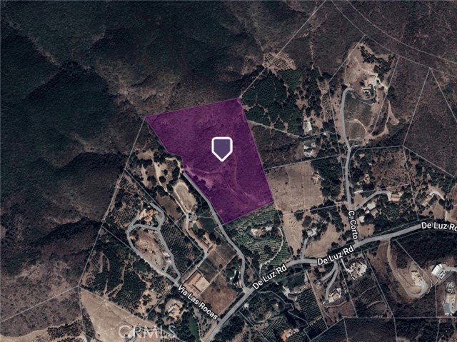Discover your slice of paradise on this 19.25-acre lot in the highly sought-after De Luz community of Temecula. Nestled amidst rolling hills and breathtaking natural beauty, this property offers endless possibilities for your dream estate, vineyard, or grove. This parcel features a serene and private setting with panoramic views of the surrounding countryside. Whether you envision building a custom home, creating an agricultural retreat, or simply investing in land, this prime lot provides the perfect canvas. De Luz is known for its cooler coastal breezes, lush landscapes, and proximity to Temecula's wine country, Old Town Temecula, and easy access to freeways. Don t miss this rare opportunity to own a piece of the beautiful Temecula Valley start planning your future today!Interested in this Listing?