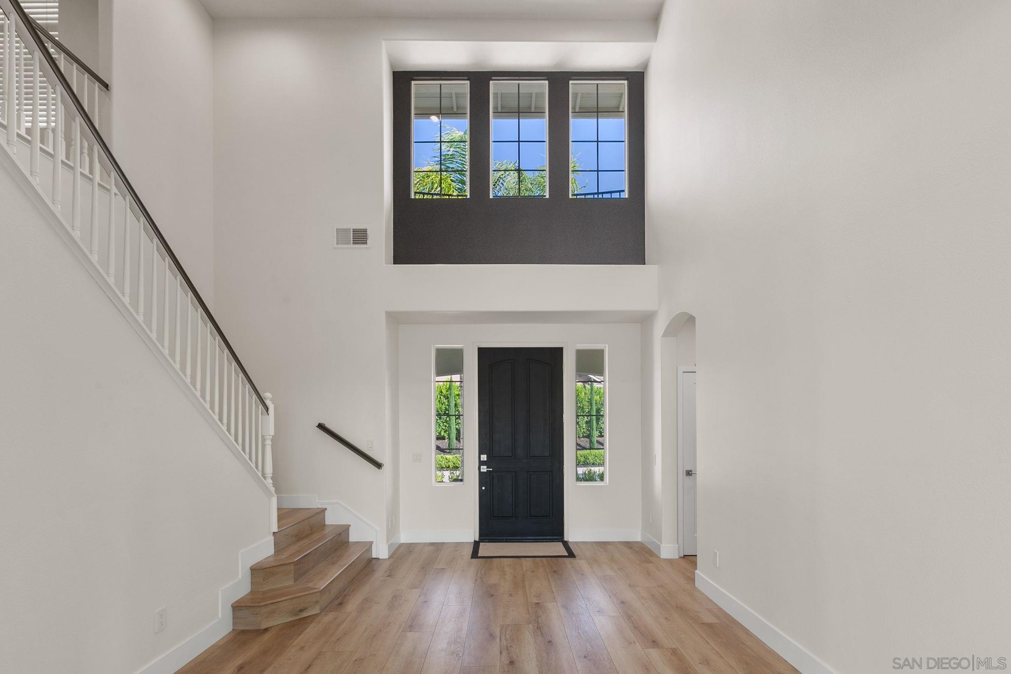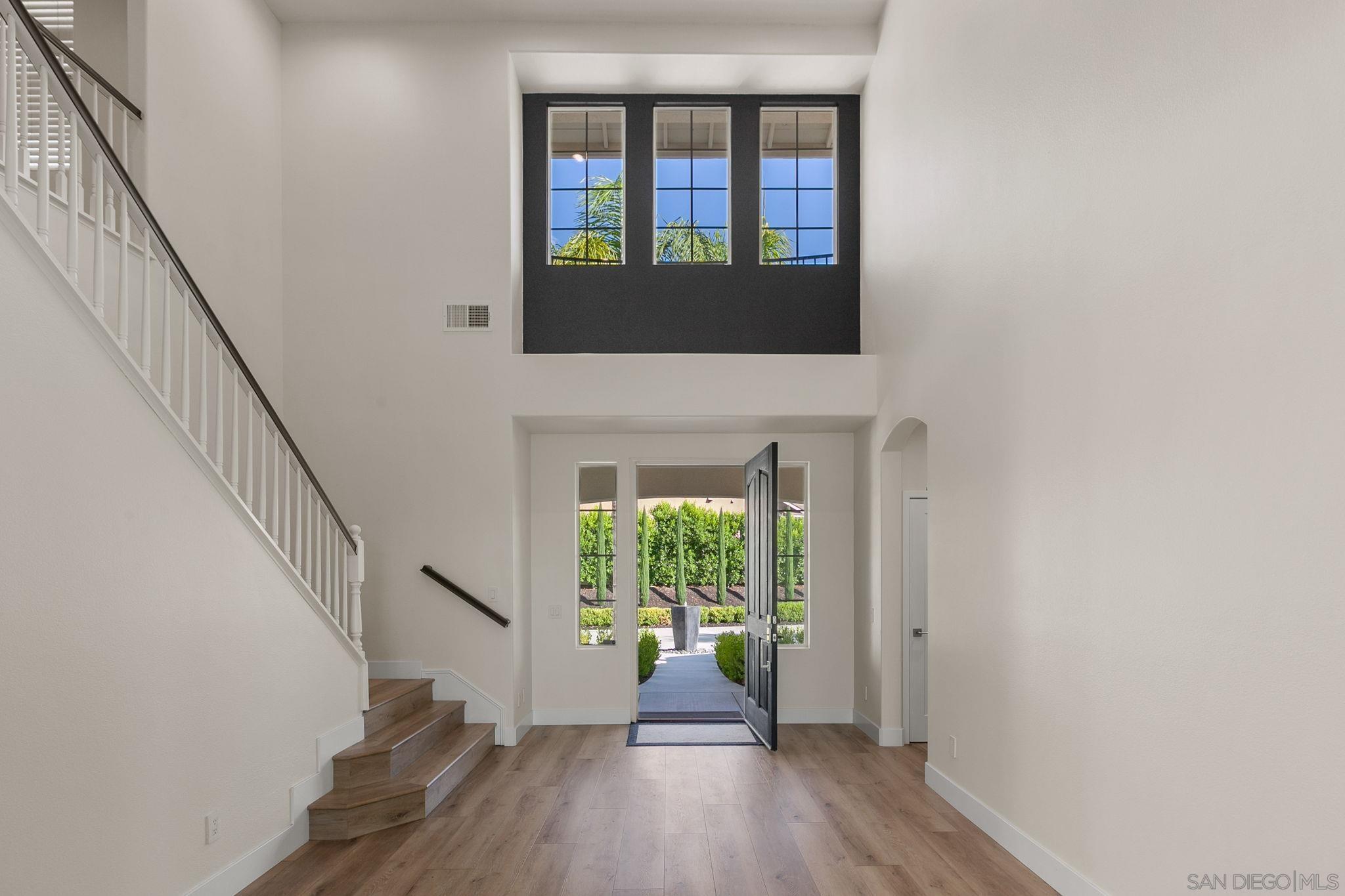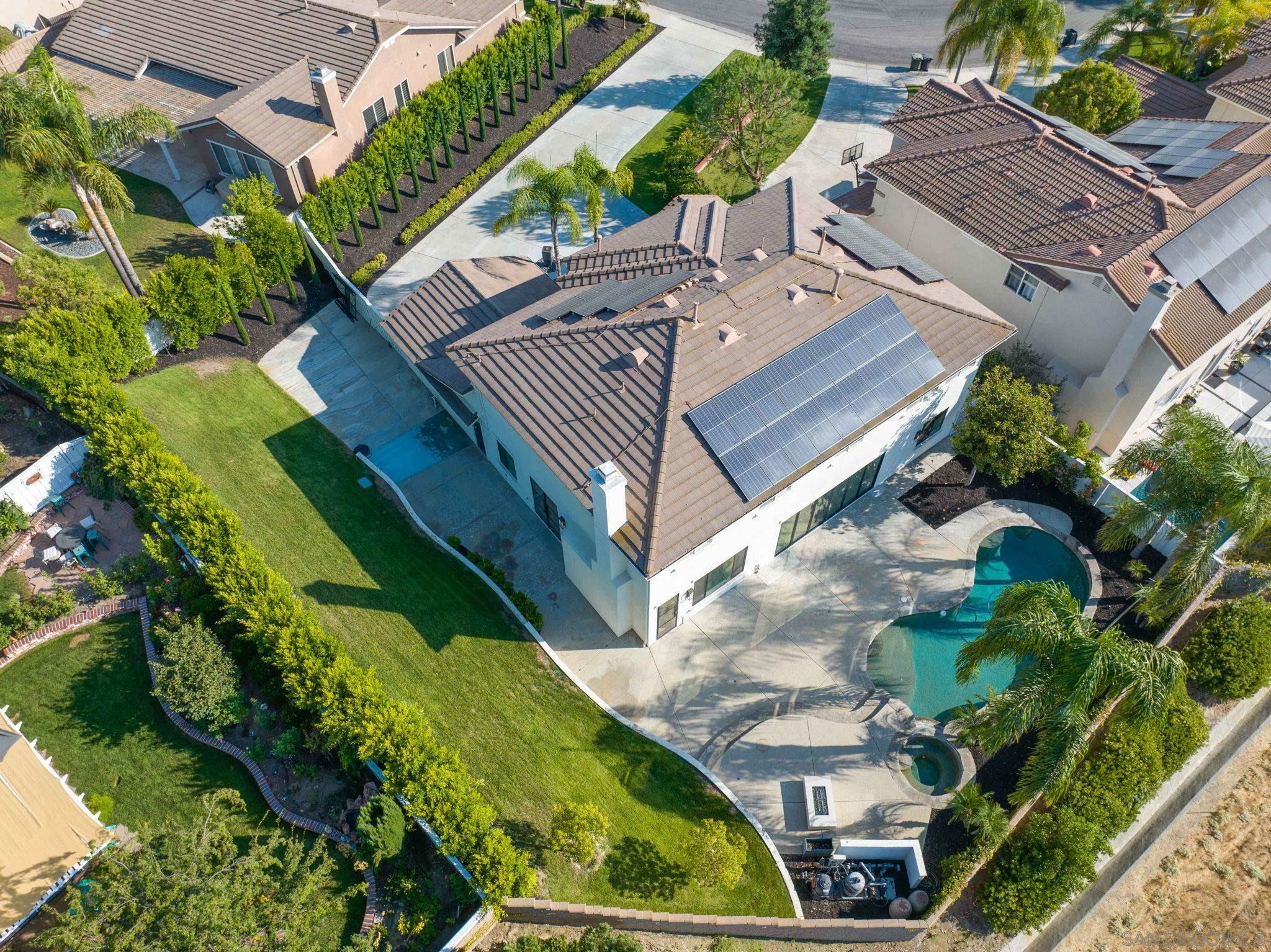 Welcome home! This is the one you've been waiting for... This 5 bedroom, 3 bath pool property has it all. A long 80+ foot private driveway leads you to this stunning Temecula home, just minutes from shopping, dining, top rated schools, and Temecula's renowned wineries. Over 1/3 acre lot! Elegant 2 Story front entrance with all new flooring throughout, updated and remodeled luxury kitchen with high end appliances including a 36"range and oversized hood, built in microwave, tons of kitchen cabinet storage, updated hardware and finishes, and walk in pantry. The wideopen floor plan flows seamlessly from the living and dining areas to a newly installed beautiful 17' bifold door system which opens up the livingroom to the outdoor pool area, making it the perfect setup for today's modern lifestyle. Bedroom and full bath downstairs, the bathroom has exterior poolside access, separate garages on each side of the home, and laundry make up the rest of the downstairs. Upstairs ~ 4 bedrooms, 3 rooms with custom closet systems, and second living/loft space! Large master bedroom retreat with newly remodeled master bathroom with huge custom shower. New modern black iron doors and windows, new exterior and interior paint, new interior doors, there's too much to mention! Leased Solar system will help with your energy costs, new ficus privacy trees and cypress trees line the driveway and side yard spaces, and the backyard is an entertainers paradise with a PebbleTec swimming pool with baja shelf, spillover jacuzzi, and gas fire pit all with west~northwest facing sunsets! No HOA!