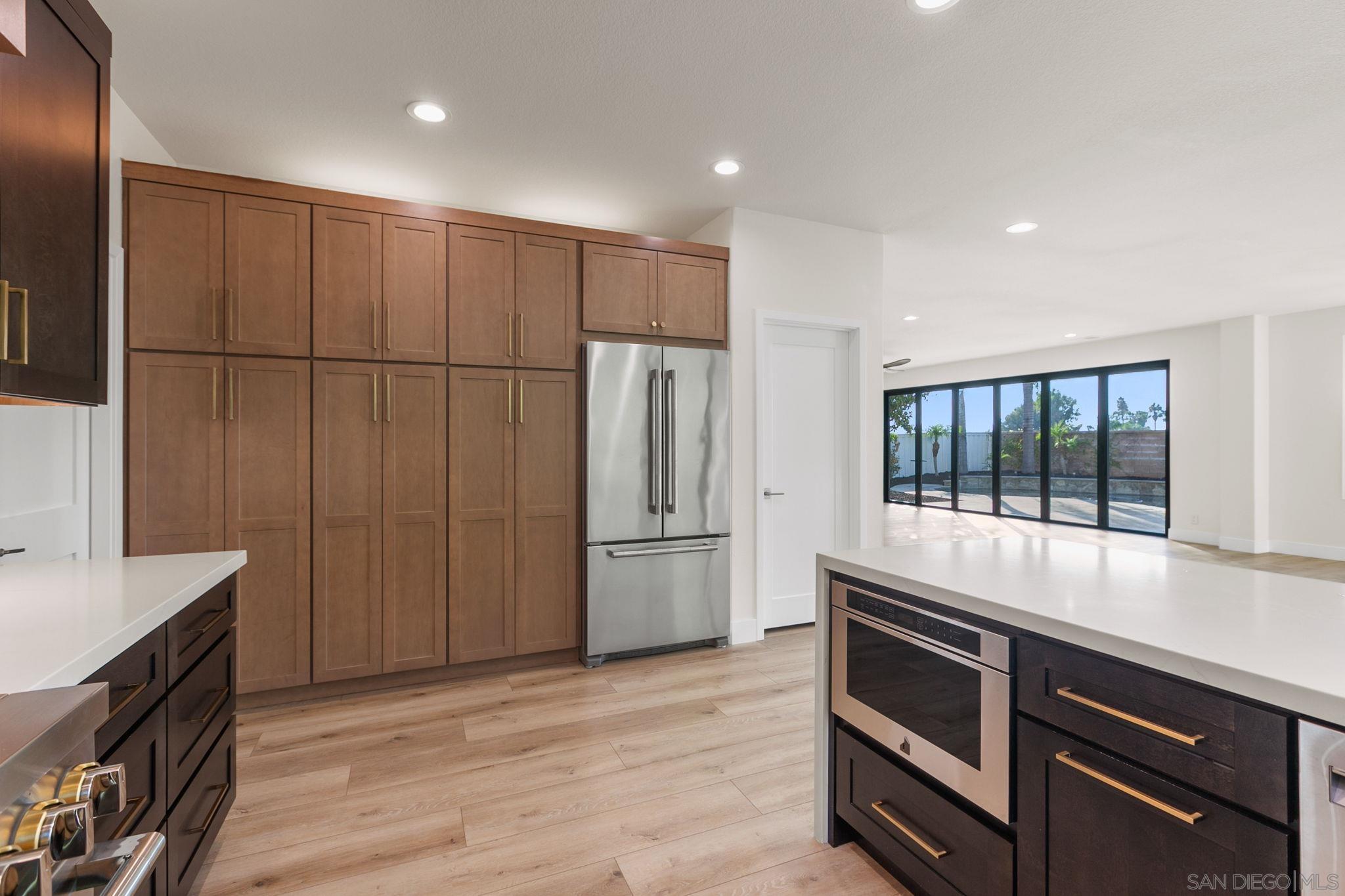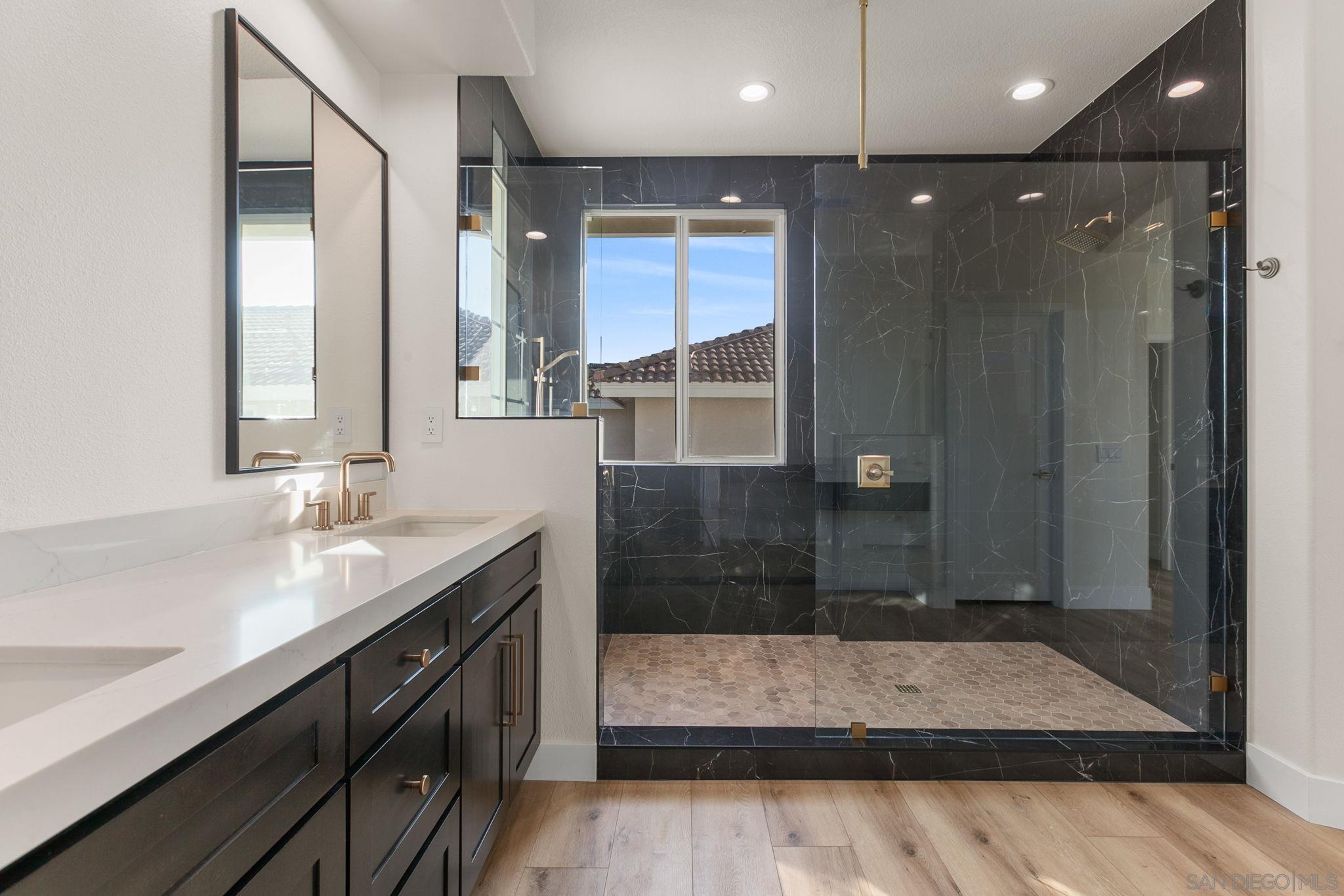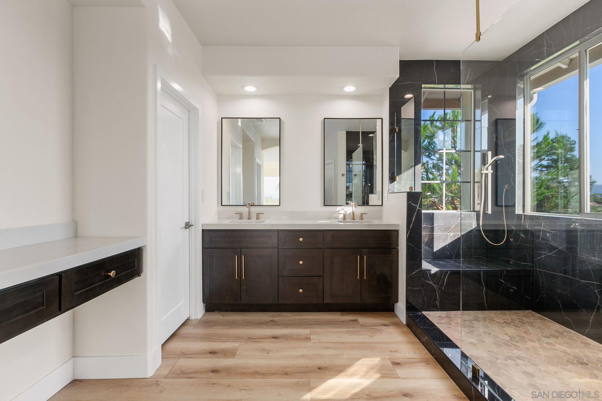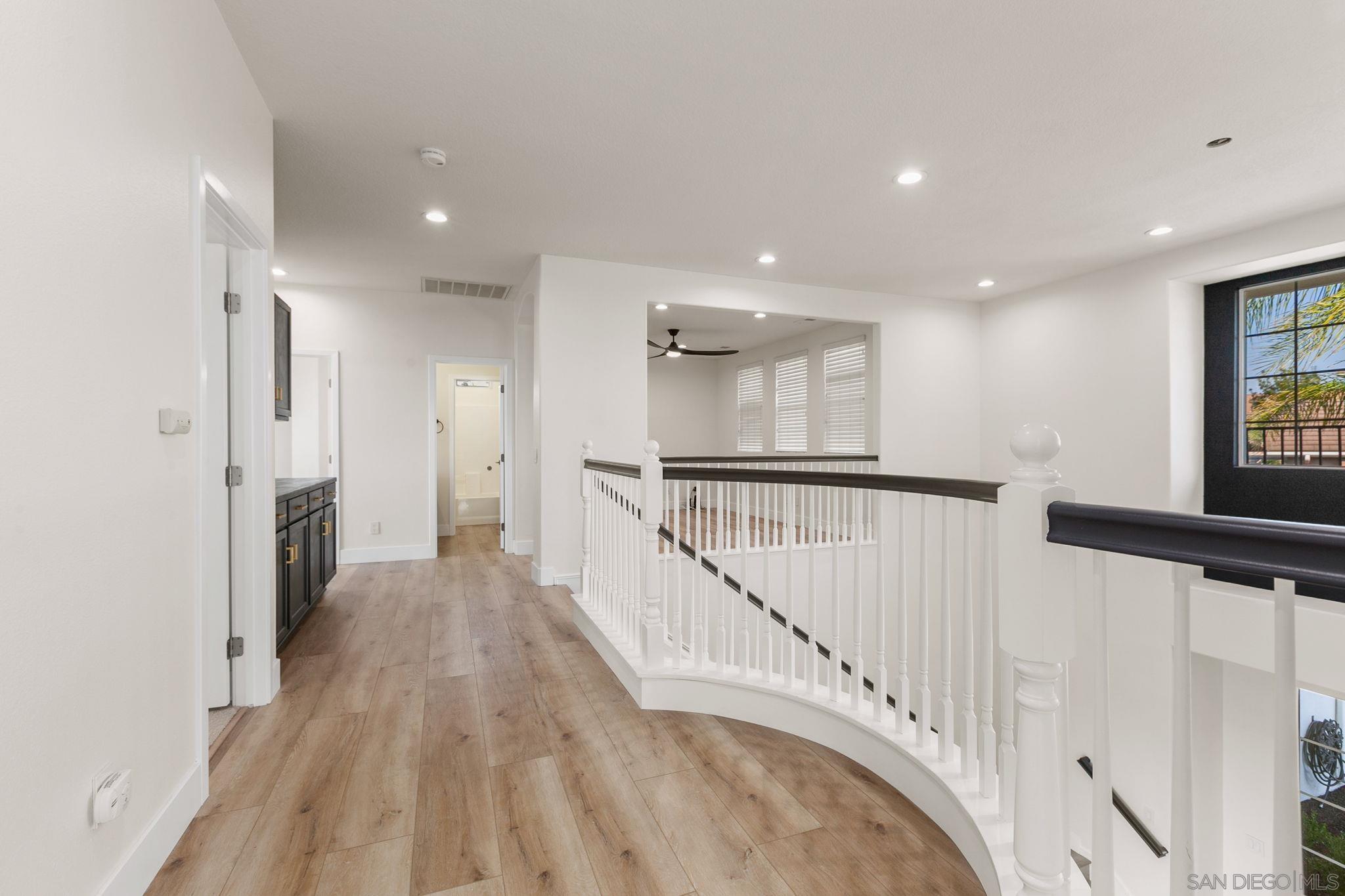 Welcome home! This is the one you've been waiting for... This 5 bedroom, 3 bath pool property has it all. A long 80+ foot private driveway leads you to this stunning Temecula home, just minutes from shopping, dining, top rated schools, and Temecula's renowned wineries. Over 1/3 acre lot! Elegant 2 Story front entrance with all new flooring throughout, updated and remodeled luxury kitchen with high end appliances including a 36"range and oversized hood, built in microwave, tons of kitchen cabinet storage, updated hardware and finishes, and walk in pantry. The wideopen floor plan flows seamlessly from the living and dining areas to a newly installed beautiful 17' bifold door system which opens up the livingroom to the outdoor pool area, making it the perfect setup for today's modern lifestyle. Bedroom and full bath downstairs, the bathroom has exterior poolside access, separate garages on each side of the home, and laundry make up the rest of the downstairs. Upstairs ~ 4 bedrooms, 3 rooms with custom closet systems, and second living/loft space! Large master bedroom retreat with newly remodeled master bathroom with huge custom shower. New modern black iron doors and windows, new exterior and interior paint, new interior doors, there's too much to mention! Leased Solar system will help with your energy costs, new ficus privacy trees and cypress trees line the driveway and side yard spaces, and the backyard is an entertainers paradise with a PebbleTec swimming pool with baja shelf, spillover jacuzzi, and gas fire pit all with west~northwest facing sunsets! No HOA!