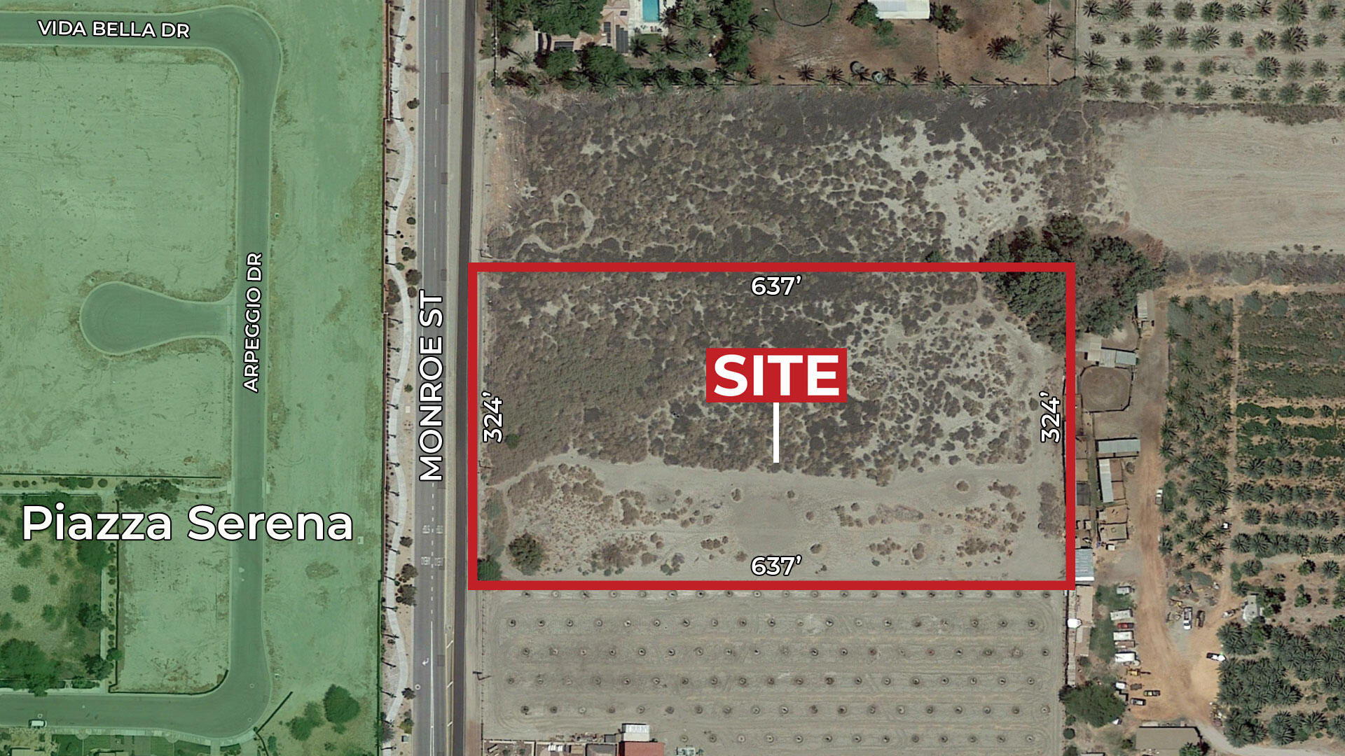| Directions: | From Interstate 10 traveling east, exit on Monroe St. south, travel 7.5 miles to site. Property is on your left side (east of Monroe St.) just before Avenue 58. Property is adjacent to address 57636 Monroe St., La Quinta. |