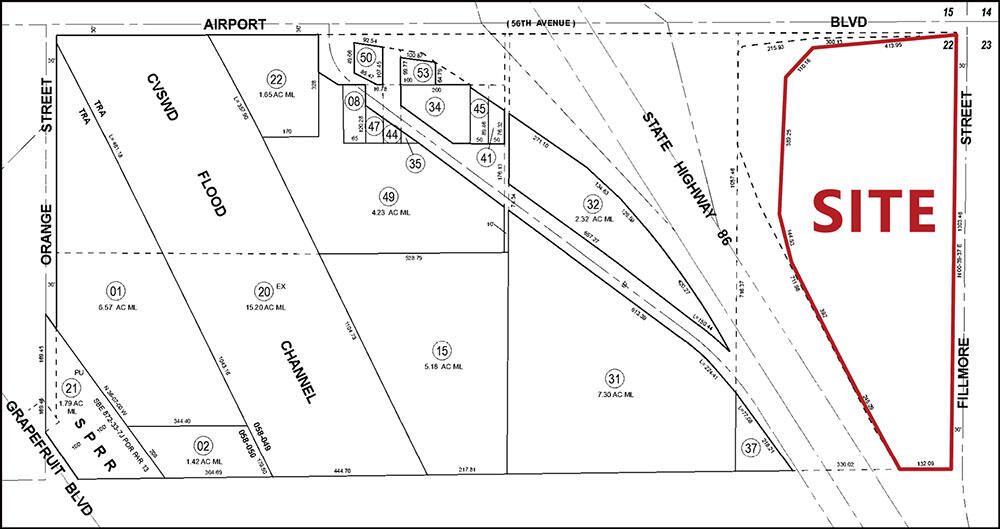 Key location at immediate offramp of Expressway 86 & Airport Blvd. Just south of Interstate 10. Expressway 86 is a key corridor for trade to Mexico. Just east of Jacqueline Cochran International Airport. Near Thermal Motorsports Racetrack, home to the $1 million Indy Car Challenge. Located at the Offramp to Desert International Horse Park, host to one of the largest equestrian facilities in North America offering world-class competition for nearly 5 months from October through March. In the sphere of influence of the City of Coachella, one of the fastest growing cities in Riverside County. In the Opportunity Zone provides potential tax incentives. 46,900 cars per day.Interested in this Listing?