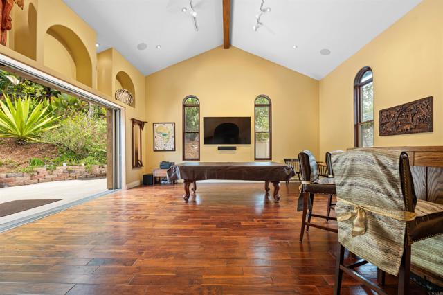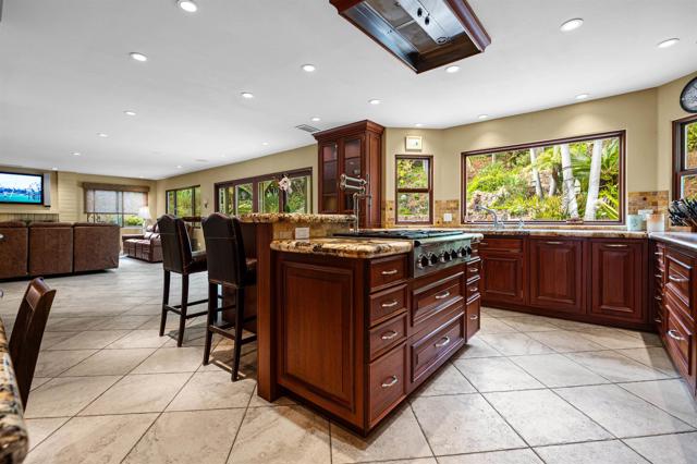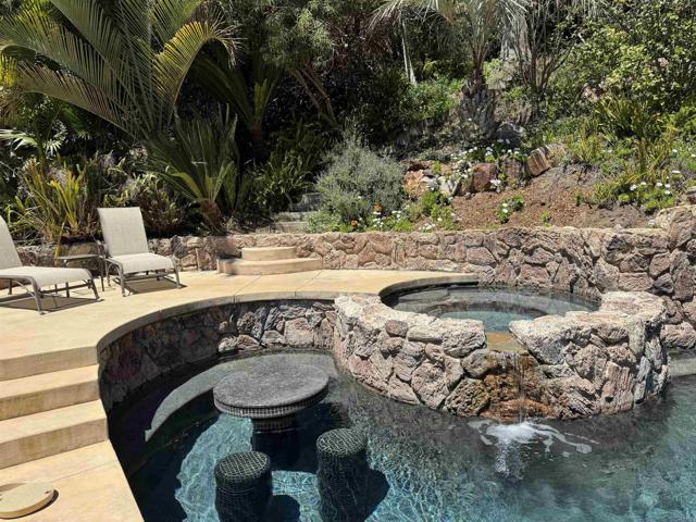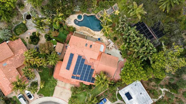 From the moment you step into this peaceful tropical oasis nestled into a quiet private enclave in Cardiff by the Sea, you can breathe a sigh of relief to be home. Surprisingly, this beautiful retreat is hidden away from the hustle and bustle of southern California lifestyle and is located just a couple of minutes off the I-5 freeway. Cooking will be a joy in this gourmet kitchen, fully remodeled with premium luxury appliances, and African mahogany custom cabinetry with exquisite granite countertops. For larger gatherings, the tropical oasis backyard awaits. A pristine pool with its own solar system, swim-up bar/seating area with adjoining hot tub and a fabulous custom 2 story waterfall flowing over the beautiful stone walls. You and your guests will feel like you re in Hawaii! The elegant game room with a seamless entrance thru Weiland custom pocket doors open up to the comfortable seating area at the barbecue to enjoy the wonderful southern California evenings - It Is A MUST SEE! There is a full bedroom currently configured as an office/study and full bathroom on the main floor. The main floor of this beautiful home with an exquisite game room has been thoughtfully remodeled. The home features 10.5 kW of owned solar installed in 2020 with net metering, the annual true up average less than $1000. The backyard is completely plumbed for natural gas with multiple outlets in various locations ideal for Patio Heaters. There is even an ocean view from the upper portion of the expensive rear lot just waiting for your inspiration. And, If that s not enough, you have the charming Cardiff town center with its shops, restaurants, and the well known Seaside Market all at your fingertips. Five minutes away is the thriving beach town of Encinitas and Moonlight Beach.Interested in this Listing?