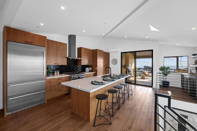 Step through the dramatic glass pivot door into your private ocean-view sanctuary, where cutting-edge design meets the effortless beauty of the coast. Ideally situated just steps from world-class beaches, surf, boutiques, the iconic Seaside Market, and the vibrant dining scene of Cardiff-by-the-Sea. At the heart of this newly constructed residence is a designer chef s kitchen featuring hand-crafted European wood cabinetry, Miele appliances, elegant stone surfaces, custom lighting, a dumbwaiter, and a built-in beverage bar with dual wine refrigerators. The kitchen opens seamlessly to an expansive white water ocean-view deck equipped with a built-in BBQ and infrared heater perfect for coastal entertaining. The open-concept great room is anchored by a striking floor-to-ceiling fireplace, while walls of glass frame breathtaking views of the Pacific Ocean. Enjoy 3 spacious en-suite bedrooms, plus a versatile office/flex space. The spa-inspired primary suite is a serene retreat, complete with custom woodwork, designer lighting, a generous walk-in closet, and a hotel-worthy spa bath with heated floors. Floating wood stairs, bespoke built-ins, six private patios, and curated finishes elevate every corner of this architectural masterpiece. No HOA!Interested in this Listing?