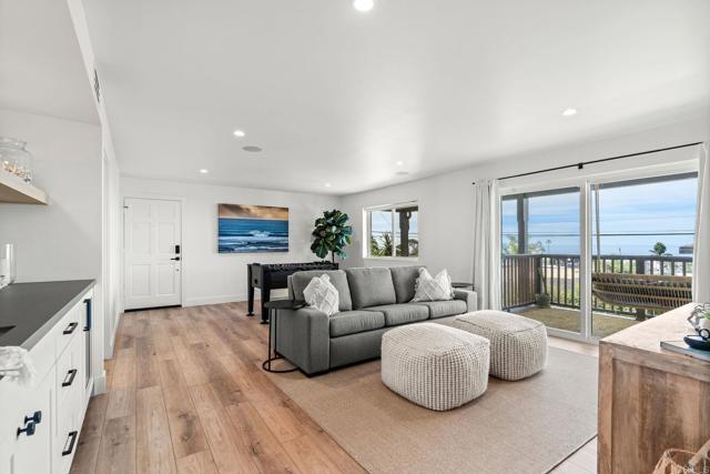 Spectacular Panoramic Ocean Views from this completely upgraded Cardiff by the Sea home. No expense has been spared with the luxury upgrades and decor this home has. This is a fully furnished seasonal rental with a 30 day minimum stay, but shorter stays are negotiable. Prices may vary based on the time of year. Current availability December 1, 2024 - January 31, 2025 & April 2 - July 6, 2025, (check for availability). Main floor features large open floorplan. All newly renovated and upgraded kitchen, living room, dining area which open up to your large balcony with some of the best ocean view you will find. Watch our beautiful San Diego Sunsets every night while enjoying a glass of wine, or have your morning coffee while listening to waves. You will also find the Master Suite on the main floor, also with the same spectacular ocean views. The next floor downstairs you will find two more bedroom, each with their own full bathrooms, and another great family room and your own balcony with balcony swing. Home comes equipped with a fully stocked kitchen for the home chef, plenty of towels and extra linens. Outdoor shower for when you are coming back from the beach. Sonos surround sound system, Wi-Fi, Smart TV's. Some of the other features include walk in pantry, coffee maker, Keurig, toaster oven, barbecue grill, wine fridge. This home has it all. Access to one garage parking spot and two driveway spots, or street parking. Will entertain a discount for stays between 2-4 months. There is a small one bedroom unit below the home with that is occupied by a single tenant. No common areas, as they have their own entrances.Interested in this Listing?