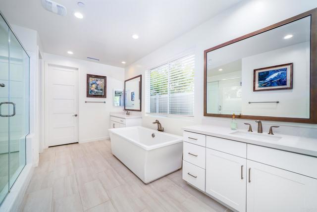 Located just a mile from Carlsbad Village and moments from the beach, this stunning home, built in 2020, blends modern luxury with coastal living. This 4 bedroom, 3.5 bathroom property features a main home with 3 bedrooms/2.5 bathrooms, and a 1 bed/1 bath ADU with its own entrance, living space, kitchenette, and bath, offering incredible flexibility for guests, multi-generational living, or rental income potential. The main residence also includes a flexible bonus room off the kitchen that can serve as an office, gameroom, or 5th bedroom. Two expansive trifold doors in the main living area seamlessly blend the indoor and outdoor spaces. The backyard is a true oasis, designed for relaxation and entertaining alike. Enjoy the sparkling saltwater pool, unwind in the hot tub, or gather around the fire pit or covered patio all surrounded by lush landscaping. The thoughtfully designed floor plan includes a spacious first-floor primary suite, complete with a spa-like bathroom featuring a soaking tub, walk-in shower, and an oversized closet. The gourmet kitchen features stacked cabinets, a farmhouse sink, double ovens, and a spacious island perfect for gathering. The great room is warm and inviting, with high ceilings, a cozy fireplace, and elegant wood flooring throughout. Upstairs, two additional bedrooms, a full bathroom and a cozy loft area provides additional living space. Additional highlights include a spacious three-car tandem garage and owned solar panels for energy efficiency. With highly rated schools, parks, and the vibrant coastal lifestyle of Carlsbad at your doorstep, this is a rare opportunity to own a modern, sophisticated home in one of the area s most desirable locations.Interested in this Listing?
