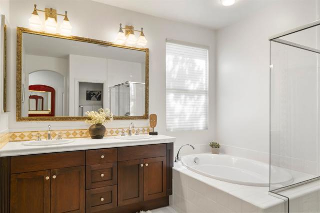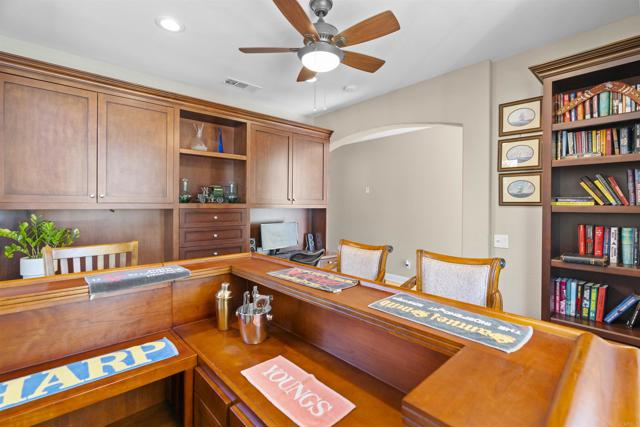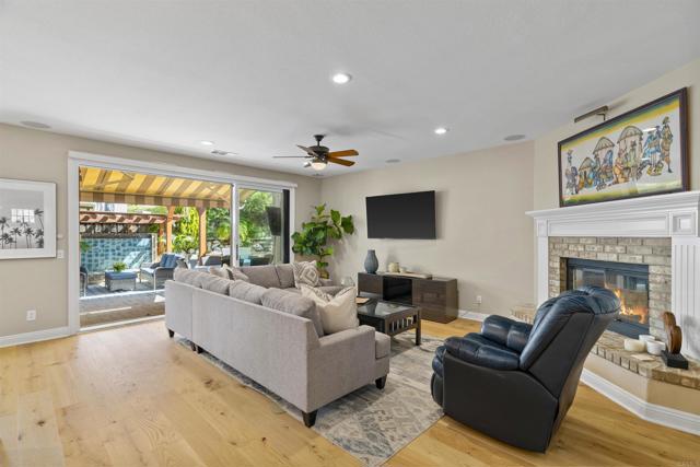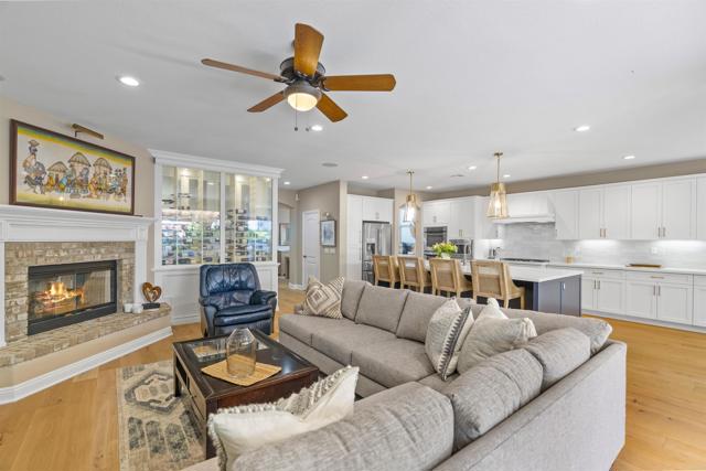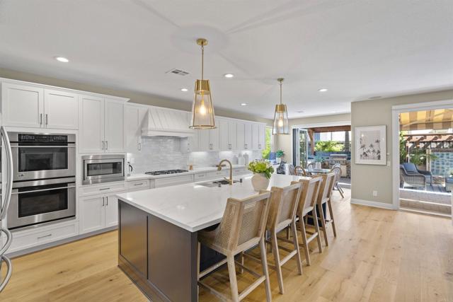 1-Story BLISS in Bressi Ranch! This meticulously upgraded home offers the ultimate low-maintenance and easy-living experience. With three bedrooms plus a den (easily converted to a 4th bedroom with an en suite), this home is move-in ready. The property has nearly $500,000 in improvements, both inside and out. One of the multitude of community parks is opposite and across the street from the property. Enjoy outdoor living and entertaining at its very finest ... a BBQ island with bar seating, a refrigerator, a keg-orator, gas fire pit with water feature and gas fireplace ... the backyard creates a cozy gathering spot. The dining area is enhanced with a retractable awning, and the entire space is finished with elegant flagstone and tile. This indoor/outdoor area is perfection personified for ideal SoCal living! A large great room, centered around a mantled gas fireplace plus a glass-paneled, temperature-controlled wine storage unit that holds 385 bottles brings pleasure to the wine enthusiast. Listen to your favorite music via surround-sound speakers throughout the home. A triple door 15' slider with retractable screen and automated blinds enhances the connection between indoor and outdoor spaces. An additional cantina door was added to bring more of the outside in for optimal quality of living! A more recent remodel, the kitchen is a chef s dream, featuring an enormous island with quartz countertops, a breakfast bar and a breakfast nook. The five-burner gas cooktop, built-in oven, and microwave are complemented by ample cabinet space, a desk workspace, and a walk-in pantry with automated lighting and a butler's pantry. A new whole-house filtration system, wholly-owned solar and an already-installed EV car charger add to the luxury, efficiency and convenience. If you prefer more formal gatherings, the separate dining room will serve you well, while the office/den is equipped with custom built-in dual desk seating, cabinetry, bookshelves and a movable bar. The spacious and private primary suite offers crown molding, plantation shutters, dual bedtime reading lights, and a sliding door that leads to the patio. The primary closet is customized with dual entrances and lighting controls. The primary bathroom includes a soaking tub, enclosed shower, dual sinks, and a separate water closet. A genuine entertainer's paradise awaits you ... embracing the essence of the true California lifestyle. Trader Joe's, Peet's Coffee, Stater Bros, Sprout's, CVS, services and restaurants are all within easy walking distance!Interested in this Listing?