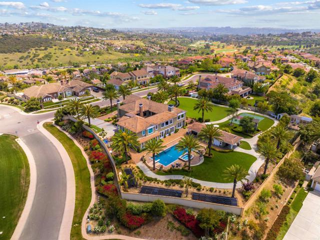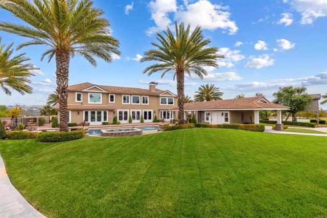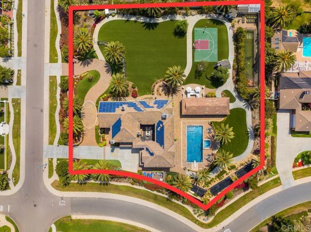 Tucked behind private gates in the exclusive Magnolia Estates enclave of Bressi Ranch, this elegant custom home spans approx. 6,219 sq.ft. on a rare 1.56-acre corner lot, the largest in the neighborhood. With 5 bedrooms, 5.5 baths, and versatile spaces including a media room, private office, library, and craft room, this home was designed for both luxury and function. A dramatic foyer with a sweeping staircase and soaring coffered ceilings sets the tone for this grand residence. The resort-style backyard features a heated saltwater pool with 10-ft deep end, fountains, spa, and a pool house complete with bath, laundry, outdoor shower, and a fun wine lounge. An expansive outdoor kitchen with BBQ, fireplace, and seating makes entertaining seamless. The grounds also include a batting cage (with Petco Park dirt!), half basketball court, treehouse with WiFi, and a canine courtyard. For garden lovers, there s a fruit orchard, raised flower beds, chicken coop, and garden shed. The chef s kitchen features dual islands, a pot filler, built-ins, walk-in and butler s pantries, and a sunny breakfast nook. The primary suite offers a fireplace, spa-like bath, and custom walk-in closets. A main-level en-suite guest room is perfect for visitors, while upstairs, two secondary bedrooms feature a Jack and Jill bathroom, each with their own sinks and custom built-ins. Bonus rooms include a library, bright craft space, and spacious media room. Additional perks include fully owned solar, backup generator, 30+ security cameras, 4-car garage, newer HVAC, updated water heater, whole house water purifier, intercom system, emergency water storage, and smart control QuietCool attic fan. Located near top schools, golf, dining, and our stunning coastline, this is Bressi Ranch living at its finest. Whether you re relaxing poolside or entertaining under the stars, this home delivers privacy, luxury, and lifestyle. See attached documents for additional information, floorplans or visit the website - this home truly has it all! Buyer and buyer s agent to verify all info in MLS prior to COE.Interested in this Listing?