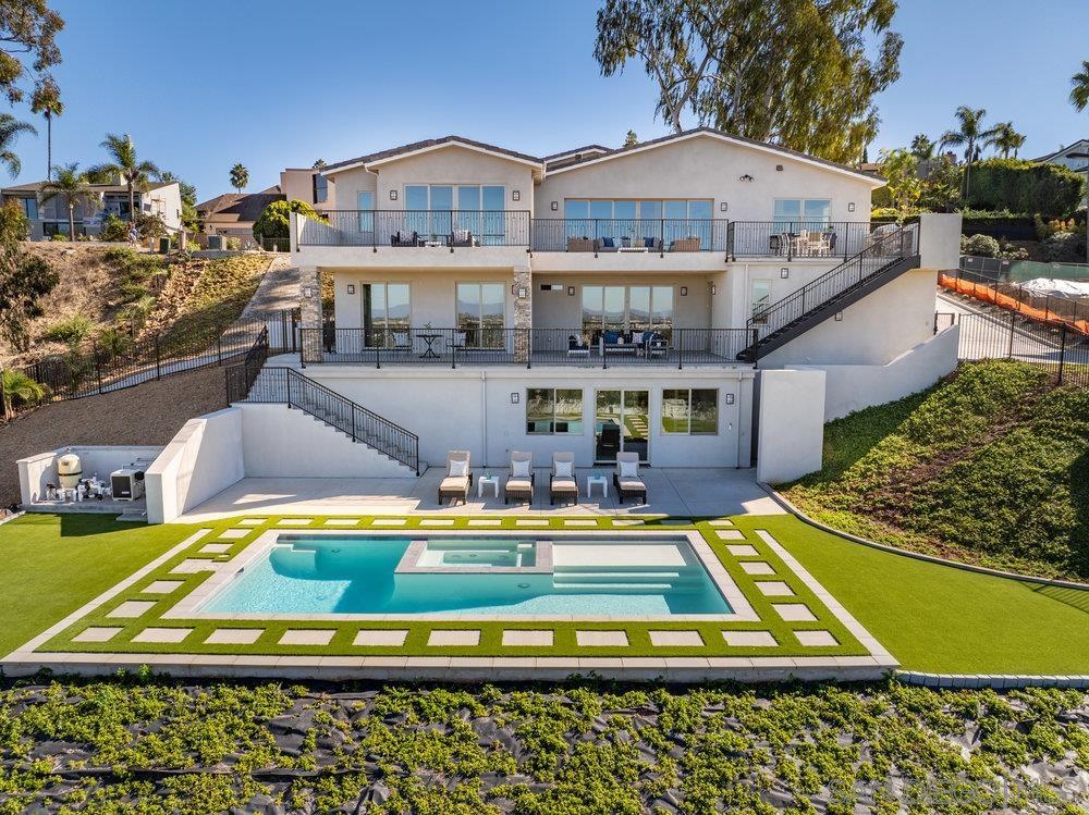 Situated on nearly 3/4 of an acre, this extraordinary residence boasts sweeping, unobstructed ocean and mountain views, creating a picturesque backdrop for luxury living. Located in the prestigious La Costa Meadows community, this newly constructed home is a masterpiece of design and craftsmanship, with every detail thoughtfully curated. Inside, enjoy engineered oak hardwood floors, stunning granite countertops, and high-end Dcor appliances. The convenience of a private elevator seamlessly connects all levels, adding to the home s exceptional functionality. The main-level primary suite serves as a peaceful retreat, while the lower levels host additional bedrooms and an expansive entertainment space, providing direct access to a newly added below-ground pool and jacuzzi. This outdoor oasis offers a private sanctuary for relaxation and gatherings. Don t miss this rare opportunity to experience the pinnacle of California living in one of Southern California s most desirable locations.Interested in this Listing?