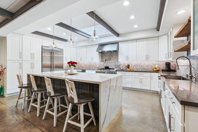 Contemporary coastal luxury residence w/ attached 322 sq.ft ADU and unrivaled .35 acre flat & private rear yard. Gated courtyard entrance leads inside to an expansive great room w/ historic exposed beams & tongue and groove wood ceiling, and polished concrete floors. Anchored by the Island kitchen that boasts custom cabinetry, handpicked tile backsplash and modern JennAir Professional appliances. La cantina doors open to the outdoor patio and the expansive rear yard. Outside: Mature trees, chicken coop, treehouse, numerous fruit trees (apple, peach, nectarine, cherry, orange, apricot) & additional storage areas. 1 Bed & 1 Bath ADU with separate entrance for multi generational living. Minutes from award winning schools, Carlsbad village and miles of Carlsbad s famed beaches.Interested in this Listing?
