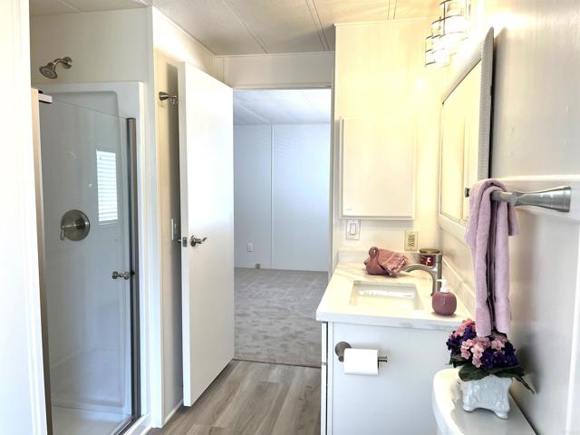 Welcome to this beautifully updated 3-bedroom home in the highly sought-after Rancho Carlsbad Community, a premier 55+ guard-gated and resident owned neighborhood. Offering 1,344 square feet of comfortable living space, this home features a thoughtfully designed split-bedroom floor plan, with the spacious primary suite on one end and two additional bedrooms and a full bath on the other-ideal for privacy and flexibility. The inviting family room boasts a cozy fireplace and flows effortlessly into the adjacent dining area, creating a warm and open living space. The kitchen offers ample cabinet storage and plenty of counter space for meal prep and entertaining. Just off the kitchen, you'll find a dedicated laundry room with additional storage-convenient and practical. Enjoy the fresh feel of vinyl flooring, updated bathrooms, fresh paint and a newer central A/C system for year-around comfort. Step outside to the large front porch, which includes a screened-in section for additional privacy-a perfect spot for your morning coffee or a relaxing evening unwind. The backyard is a peaceful place, with room for a patio table and chairs, an herb garden and plenty of additional planter space-ideal for enjoying the Carlsbad lifestyle. You'll enjoy resort style amenities such as a pool, spa, gym, pickle ball, tennis courts, dog park and bocce ball-plus more than 30 different clubs to choose from. It's also conveniently located near shopping, fine dining and beautiful beaches. Experience the best of active senior living today!Interested in this Listing?