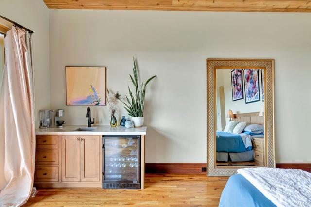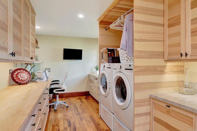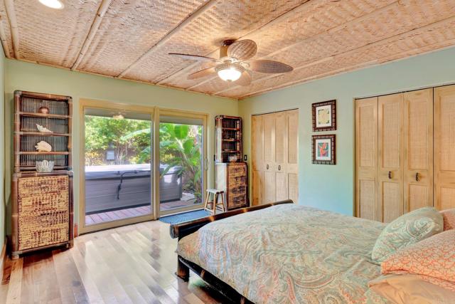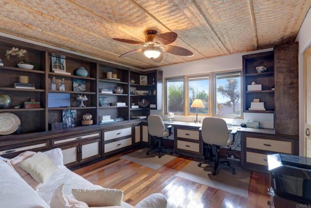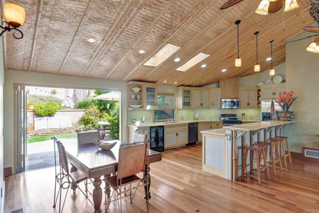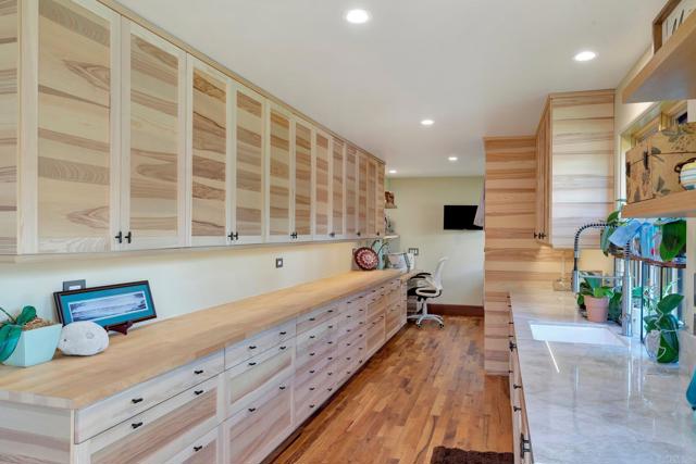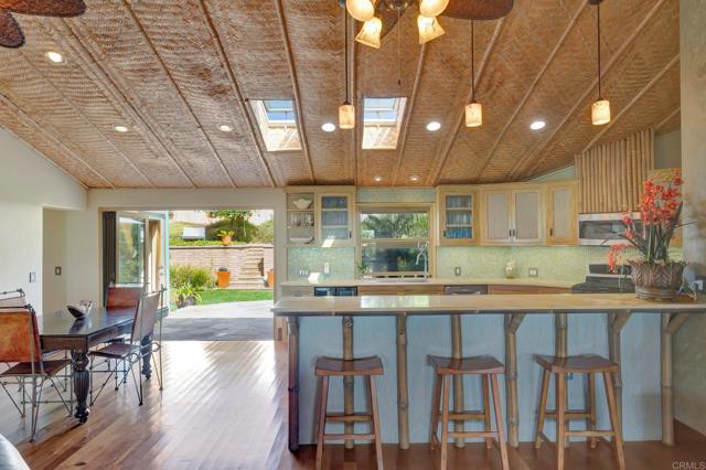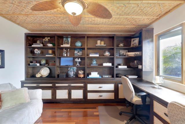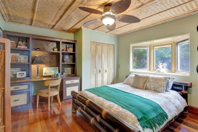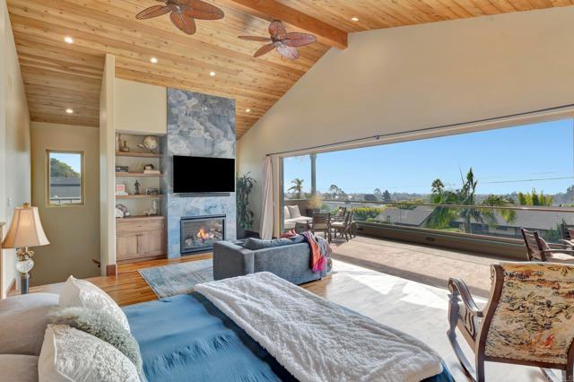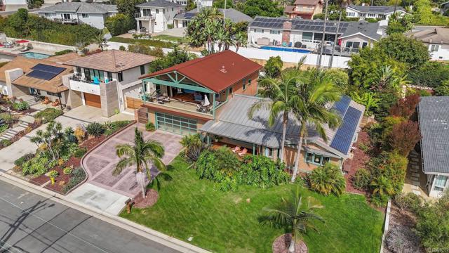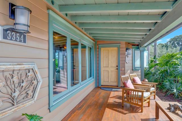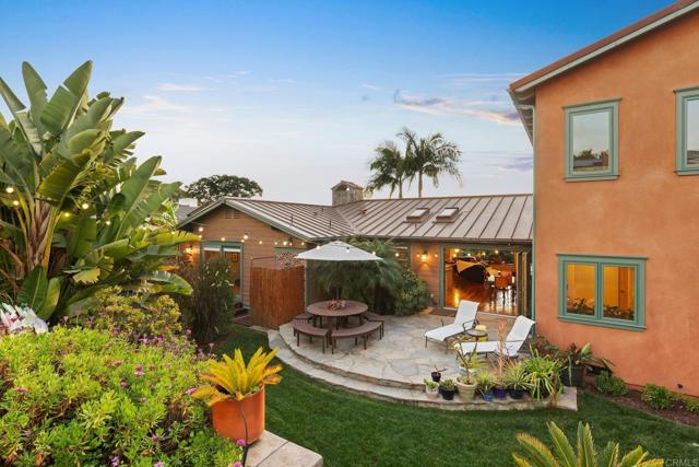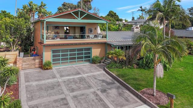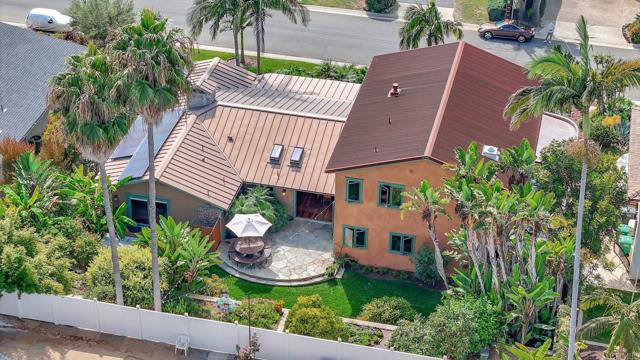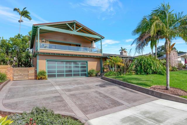 Nestled atop a hill overlooking Olde Carlsbad in the coveted neighborhood of Seacrest Estates, this custom-built masterpiece offers breathtaking PANORAMIC OCEAN views and resides in a tranquil no-through-traffic neighborhood. With 4 bedrooms and 3 baths plus an outdoor shower, the home features unique elegant design throughout. Walking through the door is like walking into a vacation on an island paradise, except, it is home. ----For peace of mind and lower-cost insurance, the home has been rated at the lowest possible risk of fire and flood. See attachment. ----The two-story exterior features ground level and stunning second floor covered porches, New England-style wood siding and trim, a standing seam copper-colored metal roof, artistic exterior lighting, and a broad custom-finished driveway big enough to accommodate several guests. The expansive backyard, with fruiting trees (avocado, orange, lemon, banana, and peach), a top-of-the-line Hot Springs spa, beautiful stone patios, and two Sonos outdoor speaker systems creates a secluded backyard entertainment zone. Situated on a 12,000 square foot lot, well over a quarter acre, there's ample space for gardening, a playground, or potential additions like a pool or ADU. A fully owned SOLAR PV system delivers significant energy offset to power the home. The attached 2.5 car garage has epoxy flooring and a translucent frosted glass garage door catering to needs for parking and workshops. ----Enter the home though the inviting ground level porch and you will find a first floor showcasing 3 bedrooms and 2 baths, one is a suite with bath ensuite. The living area has an antique beamed cathedral-ceiling with an open-plan kitchen/great room adorned with reclaimed tropical hardwood flooring made from 19th century Indonesian railroad ties, venetian plaster finishes, custom ceiling fans, and wood triple-pane Pella windows and sliding door with built-in mini-blinds. Two large La Cantina glass folding doors open to seamlessly merge indoor and outdoor living spaces making entertaining a dream. The spacious crafts room features elongated workspaces with wood and stone counters, ample storage, utility sink and a generous laundry area. An adjacent storage room includes built-in shelving and a cedar closet. A wide, brightly illuminated stairway leads to the second floor. ----The second story provides a generous master bedroom, bathroom, and dressing room suite. A 20-foot long La Cantina door opens the master room onto a covered 380 sq. ft. porch with glass wall and railings that bring stunning sunsets and a 180-degree ocean view to your bedside. Interior highlights continue with tongue-in-groove plank cathedral ceilings, solid oak flooring, and 8-inch Brazilian cherry baseboards. Luxurious amenities abound, such as an oversized walk-in rain shower with accessories and a 135 sq. ft. wardrobe room complete with custom built-in dressers, shelving, and racking. Additional features include Solatube daylighting, custom lighting fixtures, custom built-ins including a wet bar with beverage center. A stunning floor to ceiling fireplace with beautiful large format tile that warms the room on the occasional chilly night and makes reading and TV time extra cozy. Designed with foresight, the home is pre-wired and framed for a future interior elevator to go from the garage to the second floor. ---While secluded and quiet, this home is an easy walking distance to the nearby award-winning middle and high school, and minutes drive to beaches and the Carlsbad Village. This one-of-a-kind home epitomizes the Carlsbad coastal lifestyle of relaxation, luxury, and convenience. ---Schedule your private showing today to experience all this exceptional property has to offer.Interested in this Listing?
