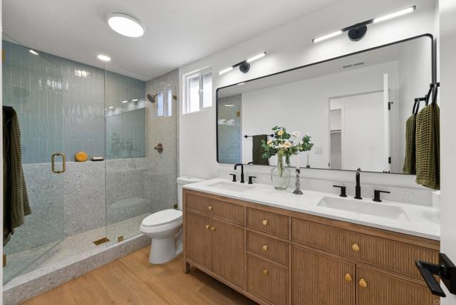 Dwell West Proudly Presents this fully remodeled Single-Story Gem in the Heart of Olde Carlsbad. Nestled at the end of a quiet cul-de-sac in highly sought-after Olde Carlsbad, this fully redesigned single-story home offers coastal living at its finest. With 4 bedrooms, a dedicated office, and 3 beautifully appointed bathrooms across 2,207 sq ft, this residence blends modern luxury with everyday functionality. The thoughtfully designed floor plan features two spacious primary suites with ensuite bathrooms, two additional bedrooms, a versatile office space, and an expansive open-concept living area perfect for gathering and entertaining. Situated on a private 7,841 sq ft lot, the property boasts all-new drought-tolerant landscaping, a newly installed central A/C system, upgraded electrical subpanel, replaced sliding doors throughout, and a freshly painted epoxy garage slab. The interior is equally impressive, featuring new white shaker cabinetry, a large center island with waterfall quartz countertops, and three designer-tiled bathrooms. Additional highlights include a new craftsman-style front door, bonus laundry cabinetry, and premium finishes throughout. The spacious backyard offers endless possibilities whether you envision a pool, garden, or play space, there s room to make it your own. Enjoy the coastal breeze and seamless indoor-outdoor living in a tranquil, private setting. Located just minutes from Carlsbad s beaches, lagoon, and vibrant downtown, and zoned for highly rated Carlsbad Unified schools, this home offers a rare opportunity to own a piece of paradise in one of North County s most beloved neighborhoods. With NO HOA fees, every detail has been considered to deliver comfort, style, and timeless Carlsbad charm. Don t miss your chance to call this exceptional home your own!Interested in this Listing?