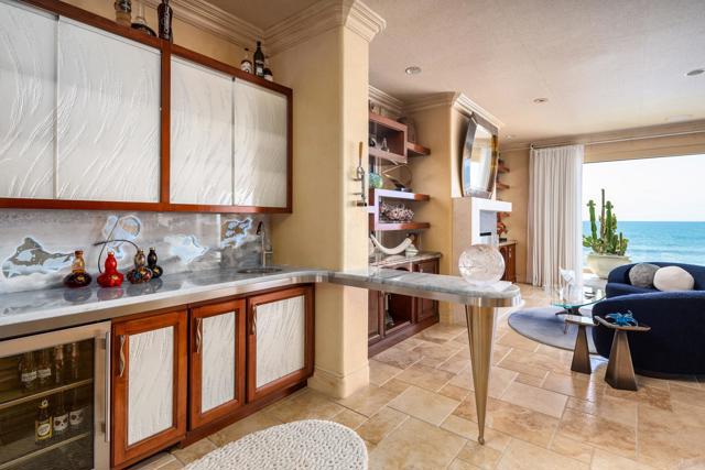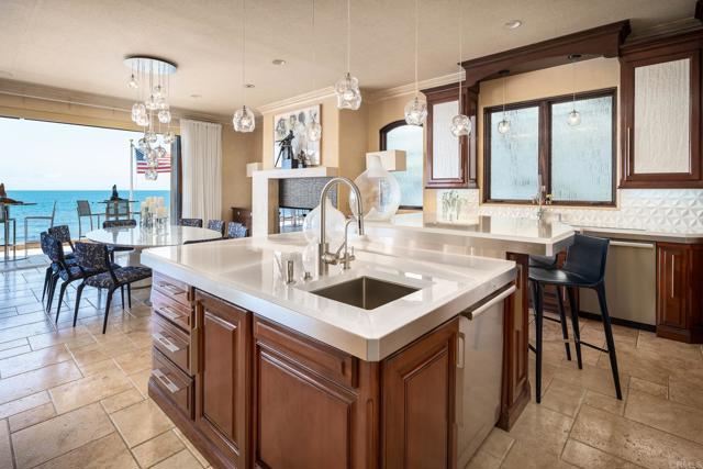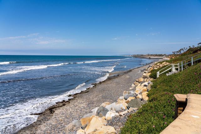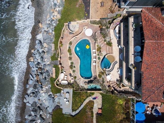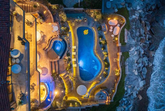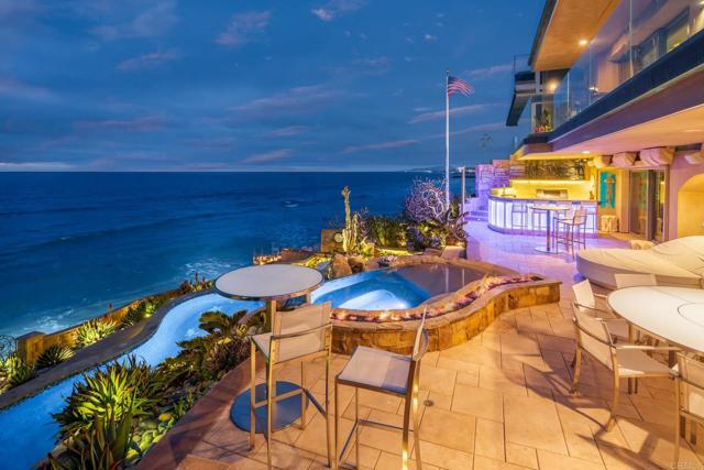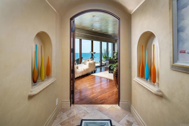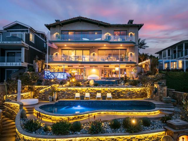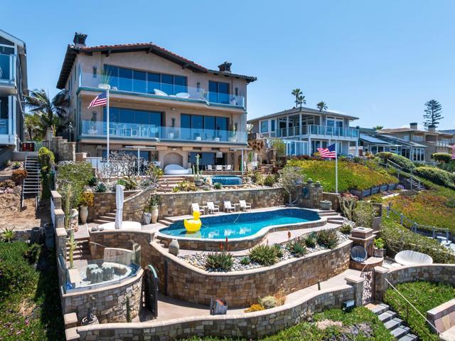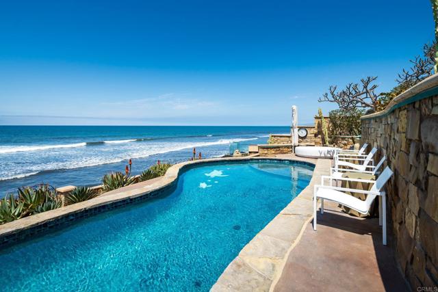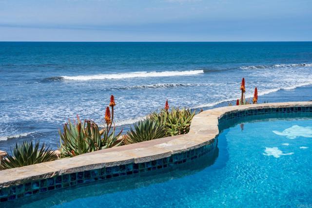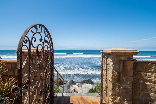 Experience unparalleled coastal luxury with this extraordinary beachfront estate, offering private beach access in the prestigious Tierra del Oro enclave of Carlsbad. Here, the rhythmic sound of white-water waves and vibrant sunsets over the Pacific are not just scenic moments they're your everyday backdrop.Set on a rare, private 1/3-acre lot with 63 feet of direct ocean frontage, a pool overlooking the ocean (rare find and may not be able to be built again), this custom European-inspired masterpiece combines timeless craftsmanship with refined modern elegance. Meticulously updated throughout, the 6,480-square-foot residence offers up to 5 spacious bedrooms, 4 full bathrooms, and a stylish powder room, all thoughtfully arranged within a flowing open-concept design that seamlessly connects formal and informal living spaces.Every inch of this home has been curated with unmatched attention to detail featuring rare, hand-selected stones and hardwoods, artisan-crafted finishes, and custom solid wood millwork. Designer lighting and fixtures elevate the ambiance, while a lighted custom staircase connects all three levels of the home, adding a dramatic architectural focal point.Retractable glass doors on every level blur the line between indoors and out, revealing panoramic ocean views stretching from La Jolla to Dana Point and inviting in the sea breeze. The result is a truly seamless indoor-outdoor living experience, ideal for both intimate relaxation and grand entertaining.Host with distinction with a stunning, glass-walled, temperature-controlled wine cellar paired with a sleek service bar, icemaker, and abundant storage perfectly suited for gatherings and celebrations. Step outside to a breathtaking exterior oasis, complete with a lushly landscaped front courtyard entry, sparkling swimming pool(unique and may be hard to replicate), spa, and expansive summer kitchen with dining bar. Lounge by the fireplace or fire pit, sip cocktails as the sun sets, or dine alfresco under the stars, all while taking in uninterrupted views of the Pacific coastline. Additional exceptional features include: Steps leading to the private wet sand beach , Pool overlooking the ocean is a rare find and may not be able to be built again, Oversized 3-car garage, Office/library, Lutron lighting system, Five interior gas fireplaces, Outdoor heaters and shower, LED lighting throughout, Extensive exterior lighting, Copper gutters, downspouts, and trim, Custom storage for surfboards and water toys, Generous interior storage solutions. This exquisite estate is more than a home it s a lifestyle of unparalleled beauty, comfort, and coastal sophistication. Experience the very best of Carlsbad luxury living.Interested in this Listing?