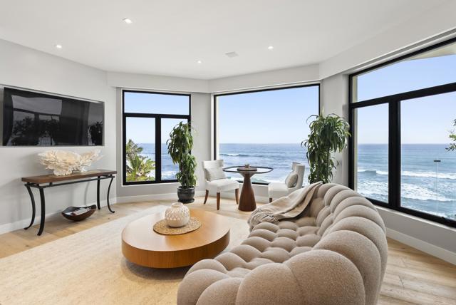 Set on an extraordinary 65-foot stretch of direct ocean frontage, 5067 Shore Drive is located in Terramar Beach a somewhat hidden and beloved enclave known among surf aficionados. This rare opportunity invites you to experience true toes-in-the-sand living in one of North County s most exclusive and private coastal communities. Sophisticated, timeless, and recently extensively upgraded, improved, and refreshed, this beachfront estate blends elevated design with luxurious materials, all framed by panoramic views of the Pacific. From the moment you step inside, the sound of the waves and the sea breeze set a tranquil tone. Every room in the home enjoys a front-row seat to the ocean, including the open-concept kitchen, living and dining areas, family room, the dedicated home office and especially the Primary suite. With four generous en-suite bedrooms, the floor plan is as functional as it is beautiful. The primary suite is a true retreat, complete with a spa-inspired bath, a library/office, and a boutique-sized walk-in closet designed to delight even the most discerning fashion enthusiast. The kitchen is a standout showpiece, perfect for those who dream of cooking with a view. Framed by floor-to-ceiling glass that invites in the shifting light as the sun moves across the sky and ultimately sinks into the sea at sunset, this space features top-tier appliances, custom cabinetry, sleek countertops, and a layout ideal for entertaining. Whether preparing an intimate meal or hosting a sunset gathering, the kitchen s unobstructed views and coastal ambiance elevate every culinary moment. Beyond the interiors, homeowners in this rare, oceanfront community enjoy immediate, unmatched "toes-in-the-sand" access to the shore placing the sand and surf just steps from your door. Located minutes from the vibrant and picturesque charm of Carlsbad Village and just a short drive from Palomar Airport San Diego s preferred hub for private aviation 5067 Shore Drive offers an unrivaled combination of coastal serenity and convenience. A home of this caliber, in a setting this rare, comes along once in a lifetime. Don t miss the opportunity to live where luxury meets the sea.Interested in this Listing?