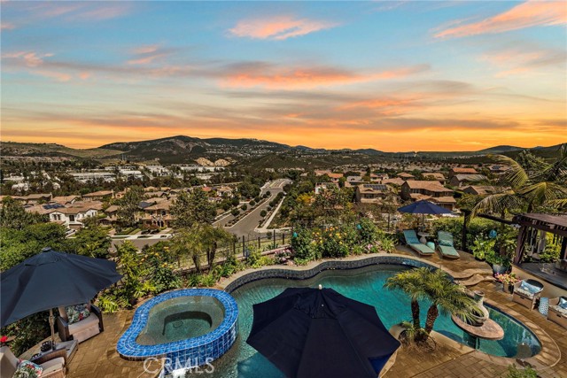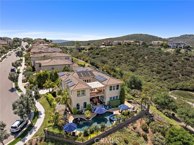 Welcome to 7051 Sitio Caliente, nestled in the sought-after La Costa Oaks community of Carlsbad, CA. This impressive home sprawls across 3,899 square feet of elegant living space that's perfect for hosting or relaxation. The premium view-oriented 10,519-square-foot lot is located at the end of a cul-de-sac, providing you with the utmost privacy. As you enter, the richness of wood floors guides you through an inviting floor plan. The chef s kitchen is equipped with Bosch stainless steel appliances and features newly added lighted glass upper cabinets to display your favorite items. The open layout transitions smoothly into living areas with wall-to-wall glass doors, opening up to an exceptional outdoor space. Here, you ll find a saltwater pool with a zero-edge spa, an outdoor kitchen, and two fire pits ideal for enjoying daytime expansive views and the sparkle of evening lights. Retreat to the primary suite, offering a private view deck, a spacious walk-in shower, a separate soaking tub, and a large walk-in closet. Ceiling fans throughout add to the home s comfort. In addition, on the main floor is a bedroom with its bath. This home's flexible floor plan allows many useful options for bedrooms and home offices to fit your needs. Two additional rooms could be coverted to sixth or seventh bedroom. Seller owned solar panels. Enclosed dog kennel area. Situated in La Costa Oaks, this home is part of a vibrant community with two pools, a clubhouse, a fitness center, and access to scenic hiking trails. While enjoying proximity to local shops and restaurants, you ll find everything you need to complement your lifestyle right at your doorstep. Don't miss your chance to make this stunning property your own!Interested in this Listing?