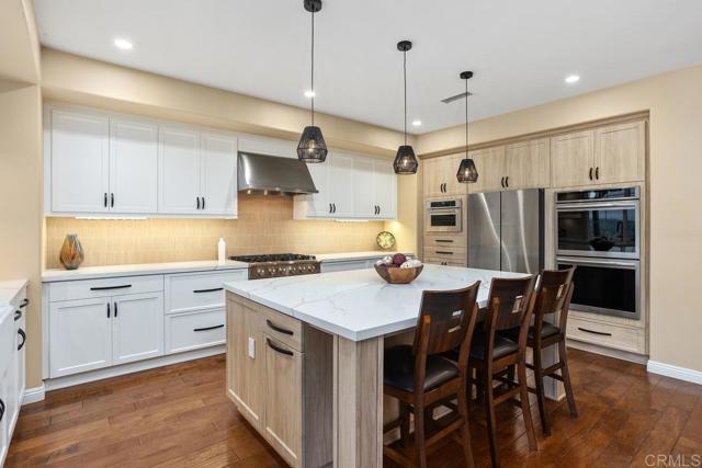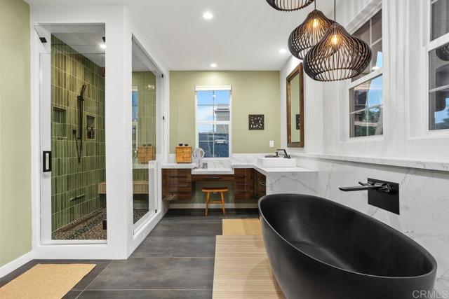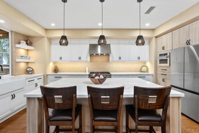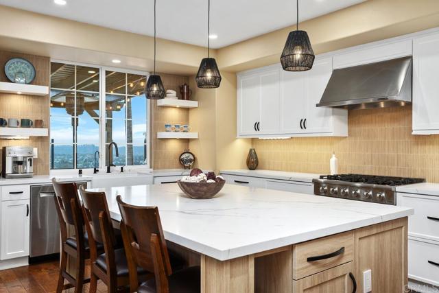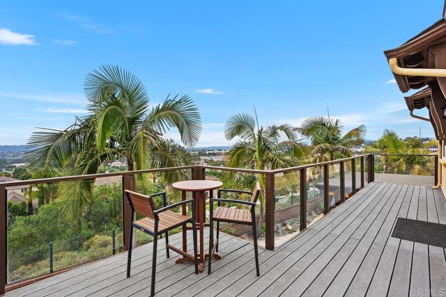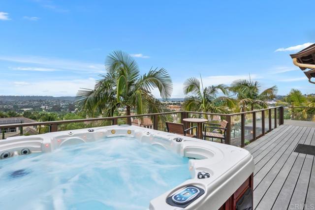 Perched in the sought-after La Costa Oaks South community, the meticulously maintained 7661 Sitio Algodon offers sweeping westerly view, a versatile floorplan perfect for modern living and a peaceful cul-de-sac location. The recently upgraded kitchen features an oversized island, sleek finishes, a 2025 Thor cooktop, Bosch dishwasher, Frigidaire double oven, and KitchenAid microwave. The main home includes 4 bedrooms upstairs and 2.5 baths, plus an attached studio ADU on the ground floor with its own bathroom, kitchenette, private entrance and outdoor patio. Upstairs, the primary suite feels like a spa retreat with a beautifully remodeled bathroom, Mr. Steam steam shower with chroma light, and a custom oversized deck with hot tub your own private sunset lounge. Designed for easy indoor-outdoor living, the home includes spacious living areas, a beautifully appointed courtyard with fireplace, a low-maintenance backyard with fire pit, built-in BBQ, covered pergola and an expansive ocean view. Owned solar, car charger, and whole house water filtration adds to the appeal. Enjoy top-rated schools, resort-style community amenities, unrivaled views and easy access to trails, shopping, and beaches all in one of the most desirable neighborhoods in town.Interested in this Listing?