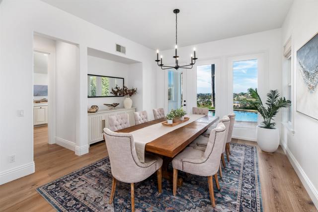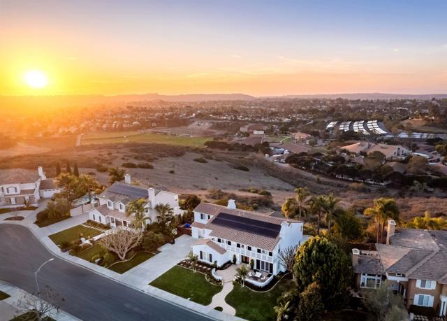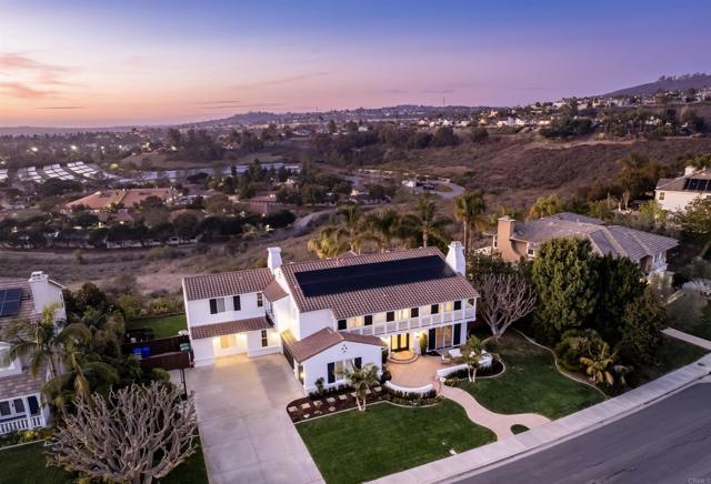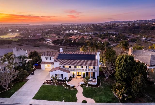 Nestled on a coveted double cul-de-sac in the prestigious community of The Ranch, this stunning estate offers the perfect blend of privacy, space, and panoramic views. Set on a sprawling 31,000 sqft lot, unobstructed ocean and canyon vistas, a private saltwater pool, and no neighbors directly behind create a peaceful retreat that feels like a world of its own. Designed for both luxury and comfort, the layout features a private casita, main-level guest ensuite, open-concept living areas and an expansive upstairs loft. With over $350K in upgrades, this home has been thoughtfully transformed with custom finishes and exceptional craftsmanship. The kitchen and bathrooms have been reimagined with new countertops, custom cabinetry, and modern fixtures. Upgraded lighting throughout, including chandeliers, recessed lighting, and ceiling fans in every bedroom. Smart home features include fingerprint door locks, Nest thermostats, a Rachio smart sprinkler system, outdoor security system, and an energy-efficient solar system, which powers the entire home, the pool and electric vehicle charging station. A lush front lawn and charming front porch set the stage for what lies within. Step through the grand foyer with soaring two-story ceilings, where natural light pours in from oversized windows and custom herringbone-patterned hardwood floors create a striking first impression, complemented by new baseboards, custom window casings, and upgraded stair railings. The formal living room is warm and welcoming, centered around a cozy fireplace with French doors that open to the front porch, the perfect spot for morning coffee or a quiet moment. The formal dining room is equally inviting with another set of French doors leading to the backyard, seamlessly connecting indoor and outdoor spaces. With both sets of doors open, gentle ocean breezes flow effortlessly through the home, creating an atmosphere ideal for al fresco living and easy entertaining. At the heart of the home, the open-concept kitchen, family room, and breakfast nook offer both style and functionality. The gourmet kitchen is designed for effortless entertaining, featuring a butler s pantry, walk-in pantry, oversized island with bar seating, and high-end appliances. The family room and breakfast nook are bathed in natural light, with a wall of windows framing breathtaking views. Glass doors open to the expansive backyard, creating a seamless flow between indoor and outdoor living. Upstairs, the primary suite is perfectly positioned to take in breathtaking ocean views, featuring a soaking tub, walk-in shower, and dual walk-in closets, creating a peaceful retreat to unwind. 2 secondary bedrooms are connected by a Jack-and-Jill bath with a 3rd ensuite guest bedroom. The oversized loft serves as a versatile gathering space, perfect for a game area or additional family room with a dedicated home office or study nook. Thoughtfully expanded, this area adapts to any lifestyle, offering flexible living options. The attached casita provides a private retreat design for multigenerational living, it is perfect for extended family, long-term guests, private home office or rental opportunity. The backyard is just as captivating, offering a private oasis framed by breathtaking, unobstructed canyon sunset views. Lounge by the heated saltwater pool, unwind in the spa, or simply take in the peaceful surroundings. Thoughtfully redesigned landscaping enhances the home s natural beauty, featuring an expanded concrete patio, ambient uplighting, and lush greenery. This home offers easy access to top-rated Encinitas and San Dieguito schools and just minutes from upscale shopping, dining, world-class golf, and stunning beaches of North County. Wide streets, large lots, and a community known for its serene setting and convenience make 7915 Corte Penca more than just a home it s a retreat, a statement, and a rare opportunity to own one of the finest view properties in The Ranch.