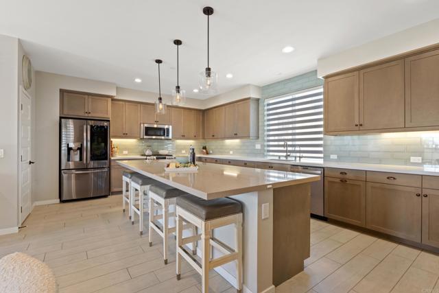 PRICE IMPROVEMENT!!! Don't miss this incredible opportunity!! Welcome to this stunning, luxury townhome, situated in the most wanted location of the Bressi Ranch community of Kensington at the Square. This magnificent west facing end unit offers unobstructed ocean and sunset views and allows you to enjoy refreshing coastal breezes from the comfort of your own home. Flooded with natural light, this impeccably upgraded residence blends style, comfort, and efficiency. Highlights include a dual-zone A/C, tankless water heater, EV charger hookup, smart home tech and solar panels. Curated interior design details feature custom window treatments, dimmable LED lighting, upgraded wood-look tile flooring, plush carpeting, and custom fans. The entry level boasts a private bedroom with en-suite bathroom and its own spacious private patio, ideal for grilling and outdoor lounging. The second level offers a spectacular open concept living area, anchored by a chef s kitchen, complete with recessed and pendant lighting, upgraded shaker cabinets, quartz countertops, stainless steel appliances, walk in pantry, and an amazing 11 chef s dream island perfect for entertaining. The bright and airy great room, framed by large windows and featuring a custom overhead fan, seamlessly extends to a private outdoor balcony, ideal for enjoying coastal sunset views. Upstairs, the third floor showcases a luxurious primary suite with sweeping ocean views. A private slider allows for fresh ocean air and abundant natural light. The lavish en-suite bathroom offers an oversized walk-in shower and elegant finishes, while the custom walk-in closet blends beauty and functionality. Custom elegant lighting adds an extra layer of sophistication to this exceptional retreat. A second generously sized bedroom with its own en-suite bath and a convenient laundry closet with like-new stackable washer/dryer complete the top floor. An oversized attached two-car garage offers extra storage space, enhanced by the home s premium location. Community amenities include a resort style swimming pool, 3 lounge style BBQ areas, tot lot, putting greens, and a bocce ball court. Best of all, you re just steps from The Square at Bressi Ranch Village Center, home to Sprouts, Trader Joe's, Bird Rock Coffee, Peet s Coffee, Richard Walker s Pancake House, F45 Training, Yoga6, Corner Pizza, Stater Bros, and more. Beaches, golf courses, top-rated schools and everything North County has to offer are just minutes away. This is coastal North County living at its finest - Modern, luxurious, and move-in ready, this home truly has it all!Interested in this Listing?