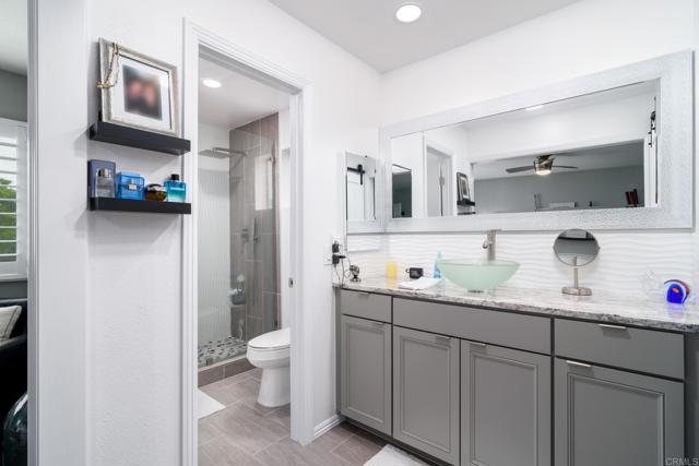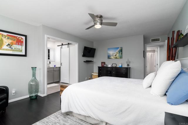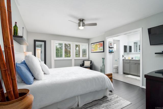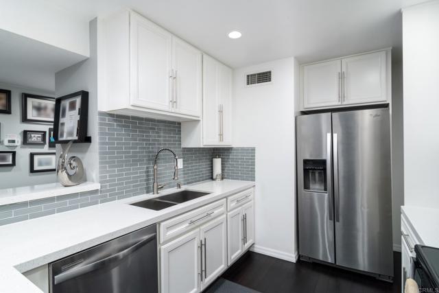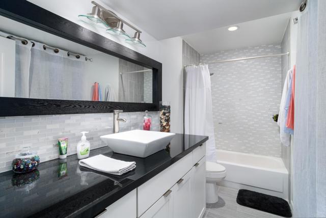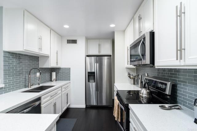Gorgeous, modern & completely remodeled condo on the La Costa Golf Resort. Three bedrooms and two baths, with dark engineered hardwood flooring throughout. Updated kitchen with white shaker cabinets, quartz countertops, stainless steel appliances, and barn door panty. Electrical upgrades throughout including lighted fans in each room. New dual pane windows, sliding glass doors, bedroom doors and closet doors. Custom window shutters, new baseboards and door moldings throughout. Both bathroom remodels include marble counters, upgraded material and fixtures. The interior of the home has been recently painted, as well the balcony with cement paint. Gated community, two car underground parking with 24 hour survaillance. Make your appointment today, you won't want to miss this one!Interested in this Listing?