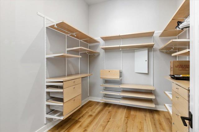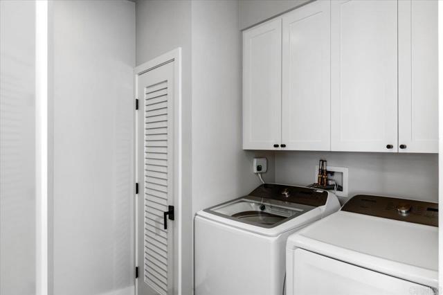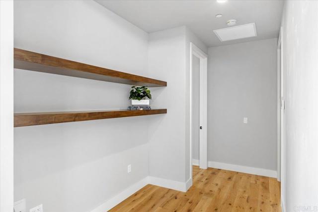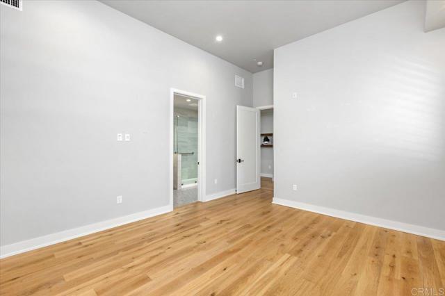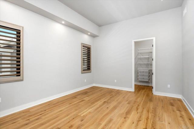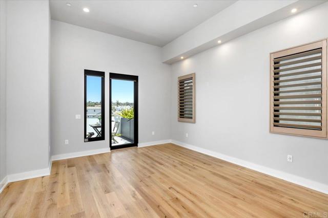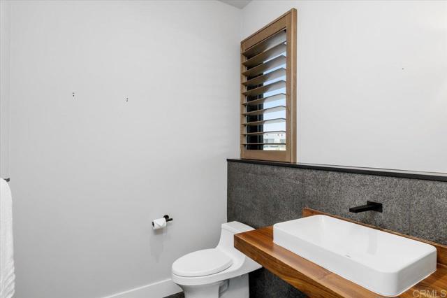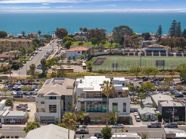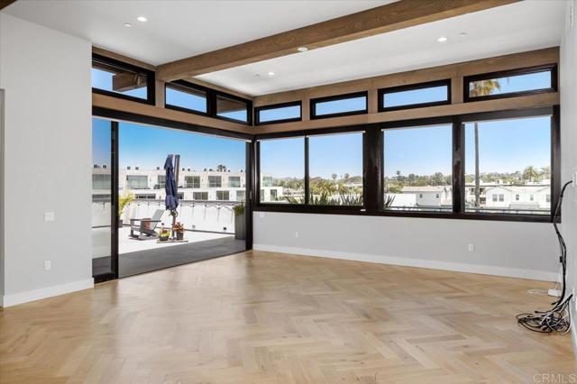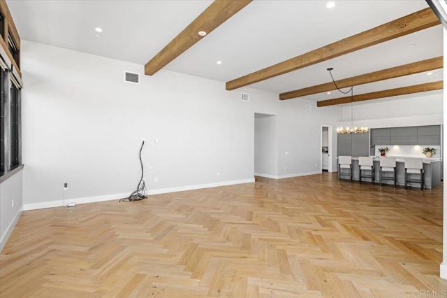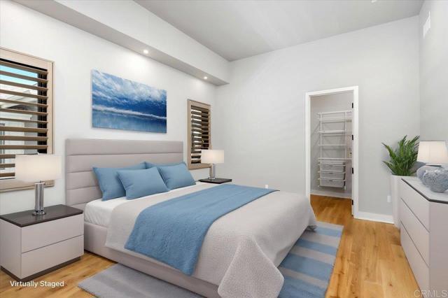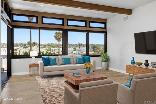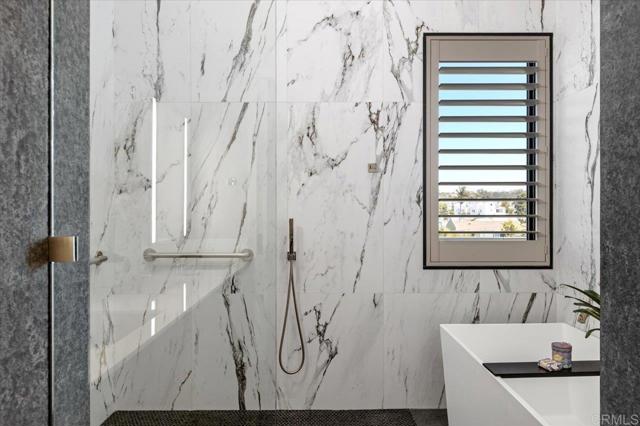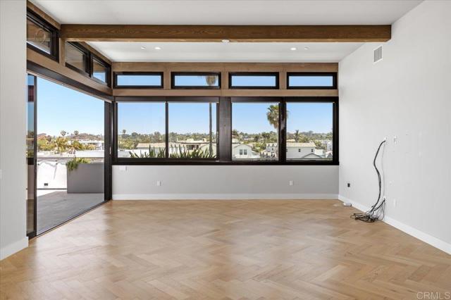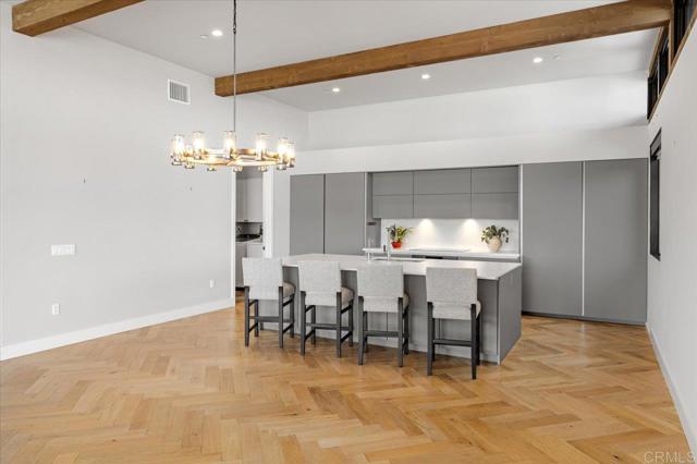 Enjoy a peek of the Ocean from this single level condo, on the top floor. Living Room opens to a large Outside Private Patio, complete with wall mounted TV, and counter area with sink, frig, storage and more. Built in 2021, this third-floor stunner blends contemporary luxury with architectural character featuring exposed beams, soaring 12-foot ceilings, striking 9-foot African Mahogany doors, Fire Sprinkler System and large windows outfitted with remote-controlled shades. Herringbone white oak floors flow throughout the open-concept layout, creating an elegant yet relaxed coastal vibe. Step inside through your semi-private elevator entrance and discover a sanctuary where no expense has been spared. The European-style kitchen showcases a large island with an Insta Hot & Cold faucet, hidden refrigerator and freezer, commercial-grade dishwasher, and more. The island offers casual seating and ample counter space, while the adjacent laundry room adds convenience. Custom floating shelves line the hallway that leads to two spacious primary suites, each with its own luxurious bathroom. One of the bedroom closets is extra-long and may accommodate a hidden desk or additional storage. Open the wall of windows to seamlessly blend your great room with the outdoor patio an entertainer s dream complete with a TV, sink, refrigerator, and storage counter. From top-tier finishes to thoughtfully integrated smart features, every detail reflects timeless sophistication and modern convenience. The secured garage includes a private storage room, surfboard storage, and even a full bathroom with a shower. Two assigned parking spaces add ease to daily life though with everything just steps away, you may find yourself leaving the car behind. Located in the heart of Carlsbad Village, this residence places you moments from award-winning restaurants, charming cafs, boutique shopping, farmers markets, wine bars, and the sparkling Pacific Ocean. Whether starting your morning with a beachside stroll or ending your evening at a rooftop cocktail bar, everything you desire is within walking distance. Enjoy all the perks of a vibrant downtown lifestyle without sacrificing comfort or privacy. This exclusive residence offers a rare sense of seclusion within a secure, beautifully maintained building your private haven in the center of it all. Whether as a full-time residence or a weekend retreat, this is the ultimate staycation lifestyle.
