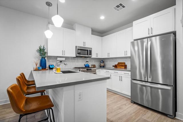 This move-in ready townhome features an open concept living space and a modern neutral palette, with vinyl plank flooring down, three bedrooms up (one currently set-up as an office with lovely built-in cabinetry), plus 2.5 baths. Modern kitchen with stainless steel kitchen appliances including Whirlpool fridge with interior filtered water, gas cooking, and quartz countertops. Custom hardscaped private front yard is fully fenced & plumbed In the 2-car garage you ll find loads of built-in storage and tankless hot water heater. Full size washer-dryer included. The Preserve s community amenities include a fitness center, beach entry pool, spa, park, playground, BBQ area and outdoor fireplace. Located in Carlsbad s top performing school district (see Public School Review) & adjacent to the 148-acre Buena Vista Creek Ecological Reserve Conveniently located near freeway access, Trader Joe s, Costco, and only minutes from Carlsbad State Beach.Interested in this Listing?