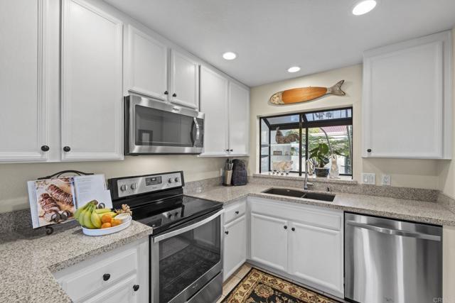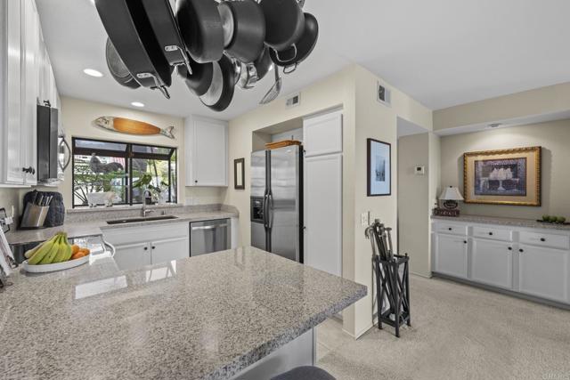 Panoramic golf course and gorgeous views to the ocean from this charming lower level, single story 2 bedroom 2 bath townhome located in the Sea Point Tennis Club. Situated on a quiet serene street, you can enjoy the La Costa lifestyle with its coastal breezes, beautiful landscaping, and numerous walking trails. This home offers one of the best locations in the complex. With a newer HVAC unit and new air-conditioning system this home has been very well maintained.. The kitchen and baths have granite counters, tile flooring and secondary bath has been remodeled with a walk-in shower. Enjoy the cozy fireplace in the living room and the wonderful private patio with see forever views. The property comes with two storage closets, a single detached garage and one assigned parking space. Residents enjoy this wonderful community with 4 lighted tennis courts, 2 well maintained pools / spas providing a resort like atmosphere only 5 mins to the beach, plus conveniently located to shopping, dining and easy freeway access.Interested in this Listing?