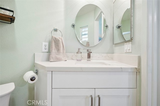 Sophisticated & Fully Renovated Townhome in Rancho Carrillo Welcome to this stunning, light-filled 3-bedroom, 2 bath townhouse nestled in one of the best perimeter locations of the sought-after Rancho Carrillo community in Carlsbad. Thoughtfully renovated with designer touches throughout, this home perfectly blends style, comfort, and privacy. Step inside to find gorgeous laminate wood flooring flowing throughout the main living areas, with striking Moroccan tile in the kitchen and baths. The first-floor primary suite offers convenience and comfort, while the open-concept living space is ideal for entertaining. The white kitchen is a showstopper featuring quartz countertops, a subway tile backsplash, an oversized farmhouse sink, pendant lighting, and Gallery stainless steel appliances. New built-in cabinetry at the dining area offer ample added storage. The bathrooms boast wood vanity cabinets, contemporary lighting, and quartz countertops, while updated fixtures, LED recessed lighting with dimmers, and forced heating & A/C bring modern ease to everyday living. An open staircase with a sleek horizontal rail enhances the contemporary feel and allows for a more open and airy layout. Enjoy peaceful mornings and colorful spring blooms from two private patios overlooking an unobstructed hillside filled with California native landscaping. With no neighbors across the street, you ll love the extra privacy this location offers. Additional features include a 2-car direct access garage and access to the community pool just steps away as well as the Rancho Carrillo Swim Center & Clubhouse. Located in the top-tier Carrillo Elementary, San Elijo Middle, and San Marcos High School district, and just minutes from hiking trails, shopping, dining, and the stunning North County beaches. This home is a rare gem beautifully updated, ideally located, and ready to welcome you home.Interested in this Listing?