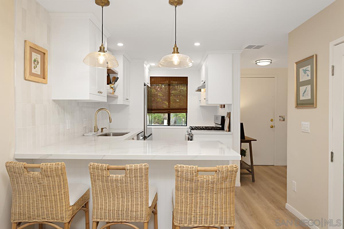 Discover your dream La Costa townhouse! This beautifully remodeled 1,080 sq ft home features 2 bedrooms, 2.5 baths, and a brand-new modern kitchen with quartz countertops, new stainless steel appliances, and a gas stove. The open floor plan, enhanced by recessed lighting, is perfect for entertaining. Enjoy brand new Luxury Vinyl Plank flooring throughout and a chic, remodeled main level bathroom. Step outside to two private balconies and take advantage of the community's newly reconstructed pool and hot tub. With two covered parking spaces, this home is an ideal oasis in a vibrant community. This home also features AC and a new water heater.Interested in this Listing?