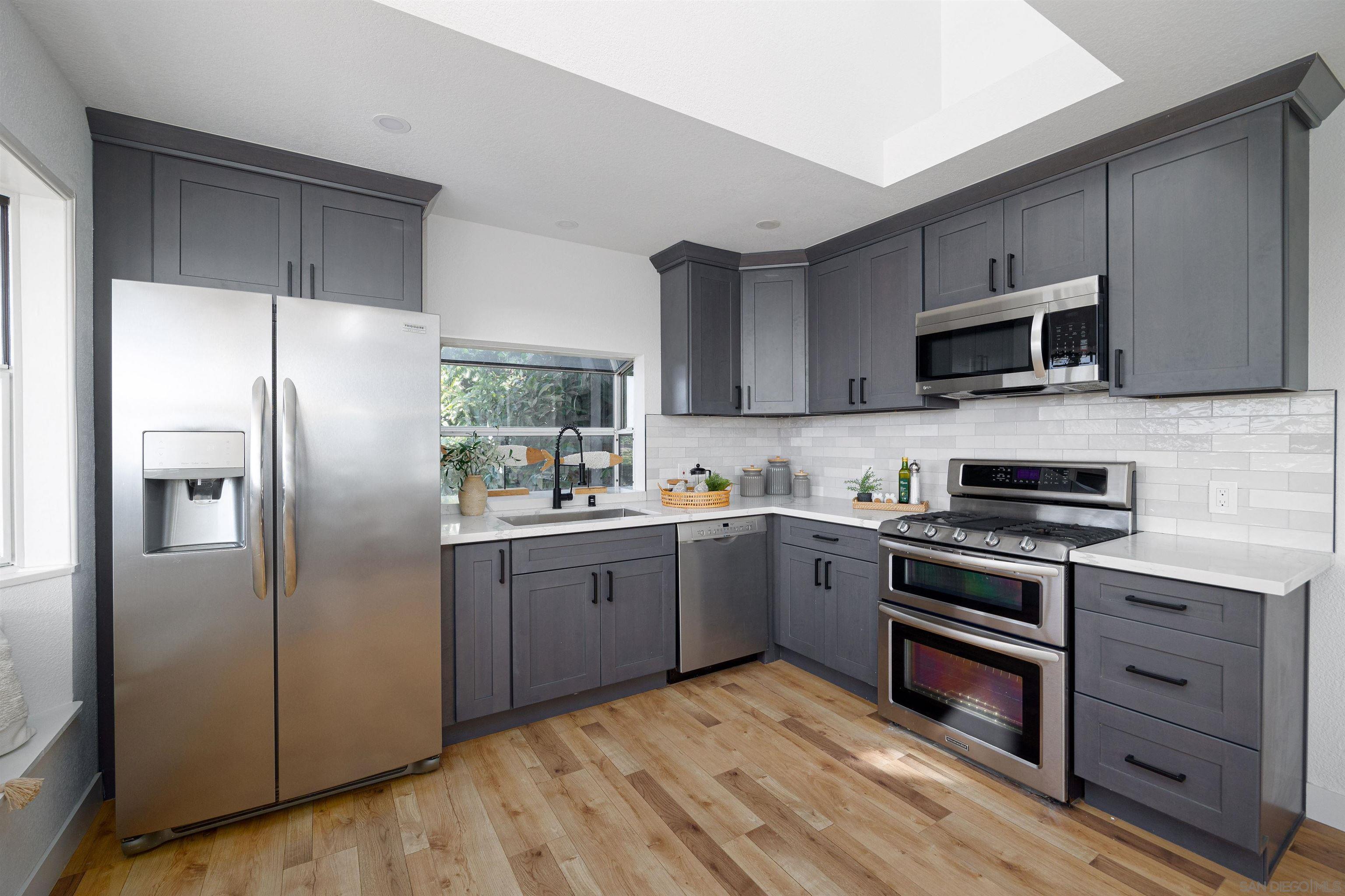 Incredible Ocean View VALUE! Nestled in the heart of Olde Carlsbad, this beautifully remodeled property offers unparalleled ocean views and exceptional craftsmanship. A true gem, the main house boasts 4 spacious bedrooms (with the downstairs bedroom currently being used as a home office) and 3.5 bathrooms, making it perfect for both family living and entertaining. The large, chef-inspired kitchen is the heart of the home, featuring custom cabinetry, a stunning 10-foot island, and high-end stainless steel appliances. A hidden pantry adds a thoughtful touch with ample storage and a dedicated space for kitchen appliances. The kitchen flows seamlessly into a formal dining area, perfect for hosting dinner parties. Additionally, a full bathroom, laundry room, and a cozy living room with a fireplace, built-in cabinets, and a TV nook complete the downstairs living space, providing both functionality and comfort. Upstairs, you'll find two bedrooms, a full bathroom and the primary suite which is an oasis of tranquility, featuring a spacious walk-in closet, a private deck with breathtaking ocean views, and a spa-like bathroom with a luxurious clawfoot tub and large shower. Above the detached 3-car garage is a fully remodeled 1-bedroom, 1.5-bath apartment. With approximately 742 square feet of living space and an additional 200 square feet of deck, this space is perfect for guests or rental income. The apartment also enjoys the same ocean view as the main house. The 3 car detached garage has new garage doors with side mount openers and a bonus full bathroom.Interested in this Listing?